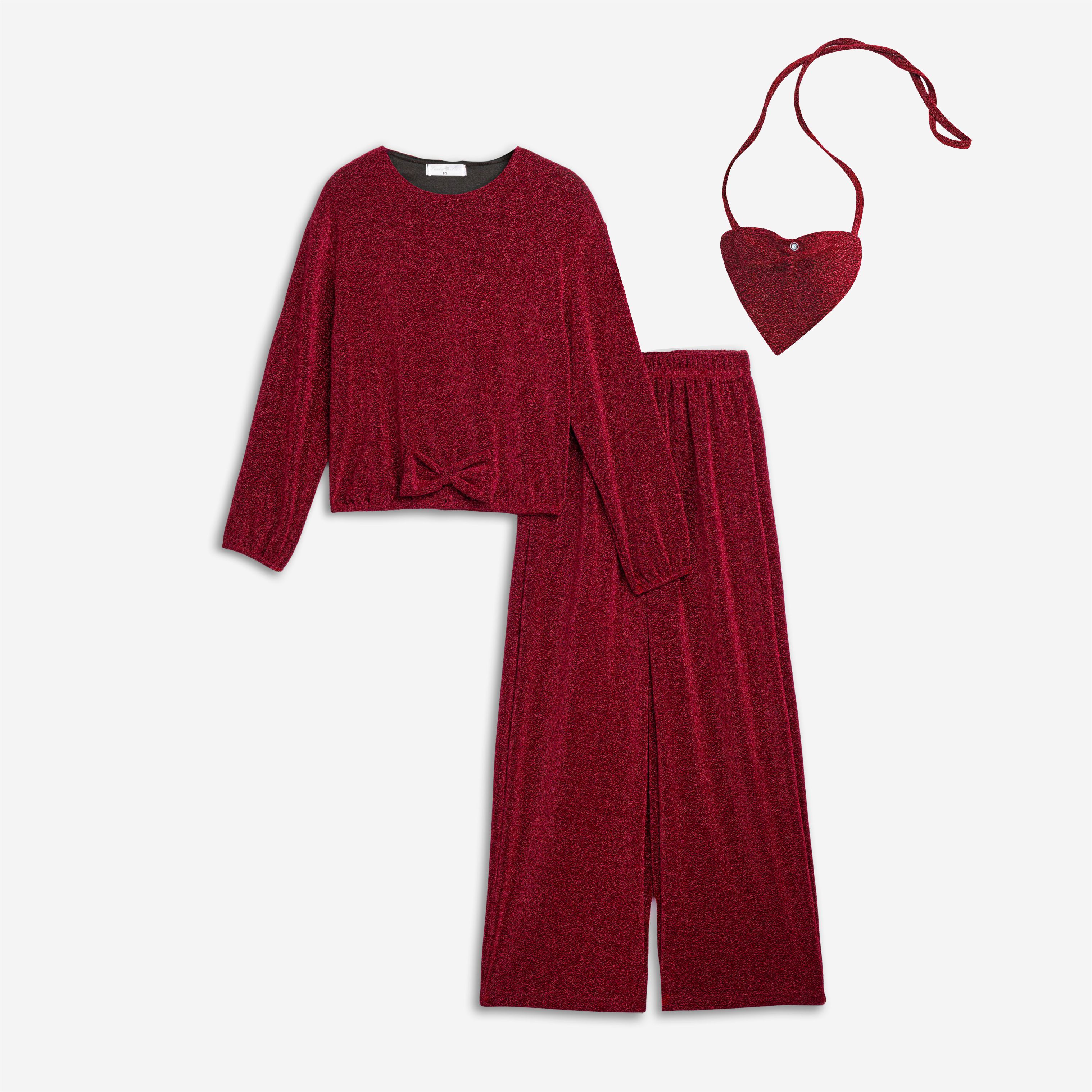 Σετ μπλούζα με παντελόνα και τσαντάκι για κορίτσι 6-16 χρονών σε χρώμα βυσσινί