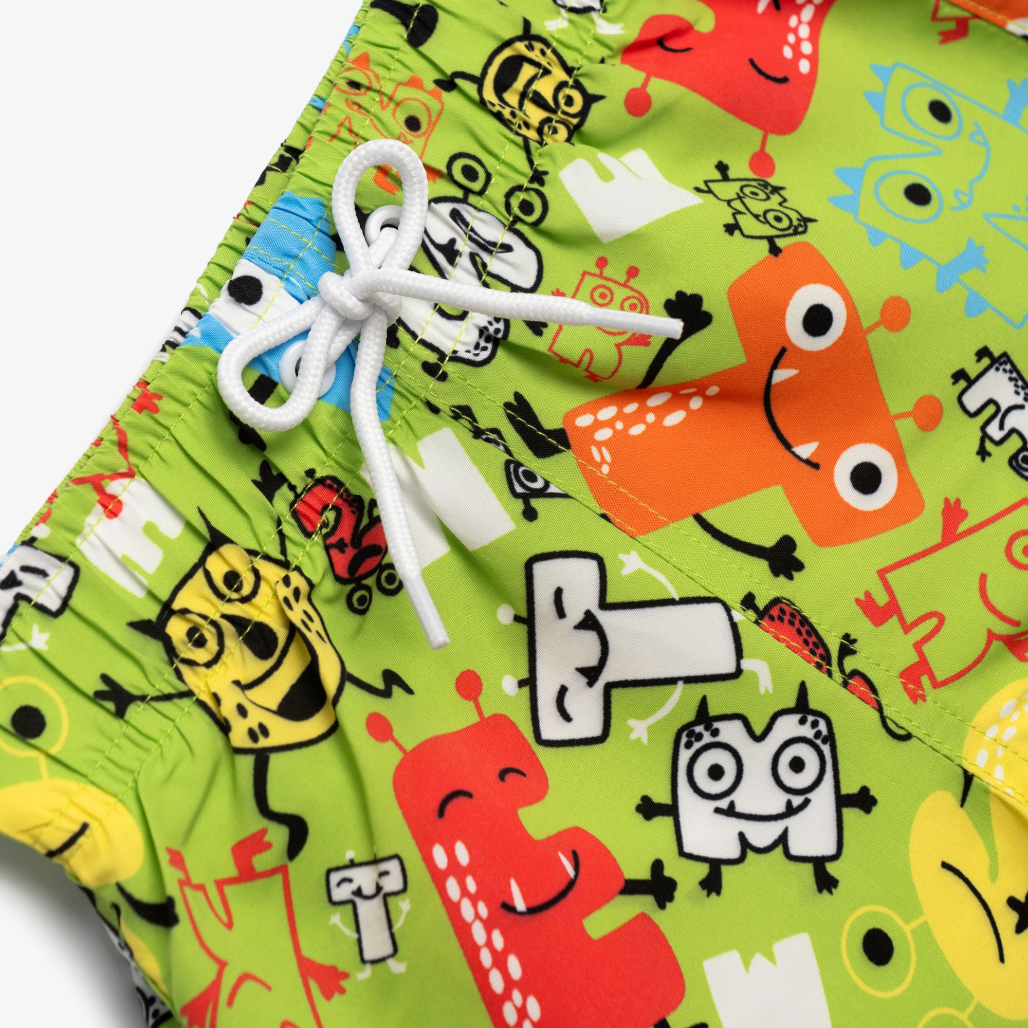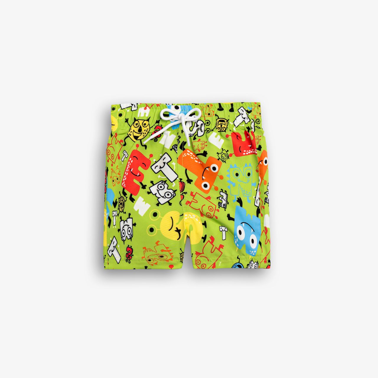 Μαγιό βερμούδα με τύπωμα (γράμματα) allover σε χρώμα ακτινίδιο για αγόρι 1-6 ετών
