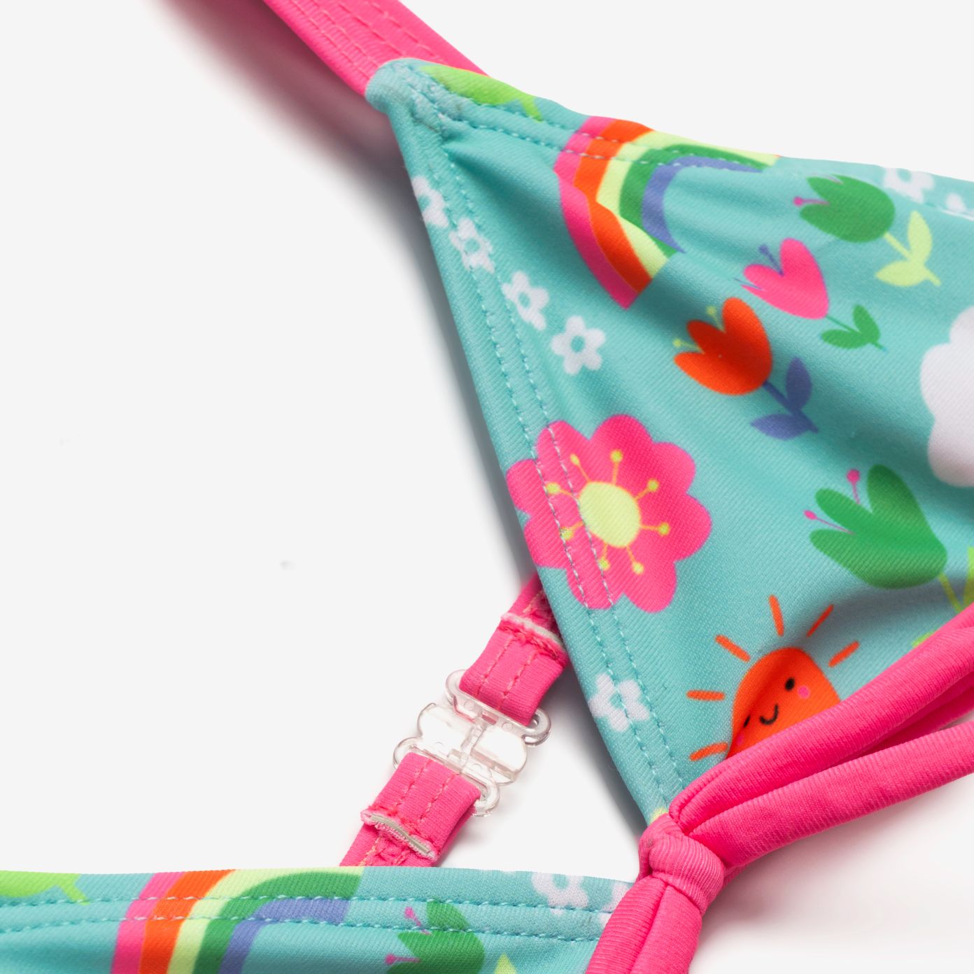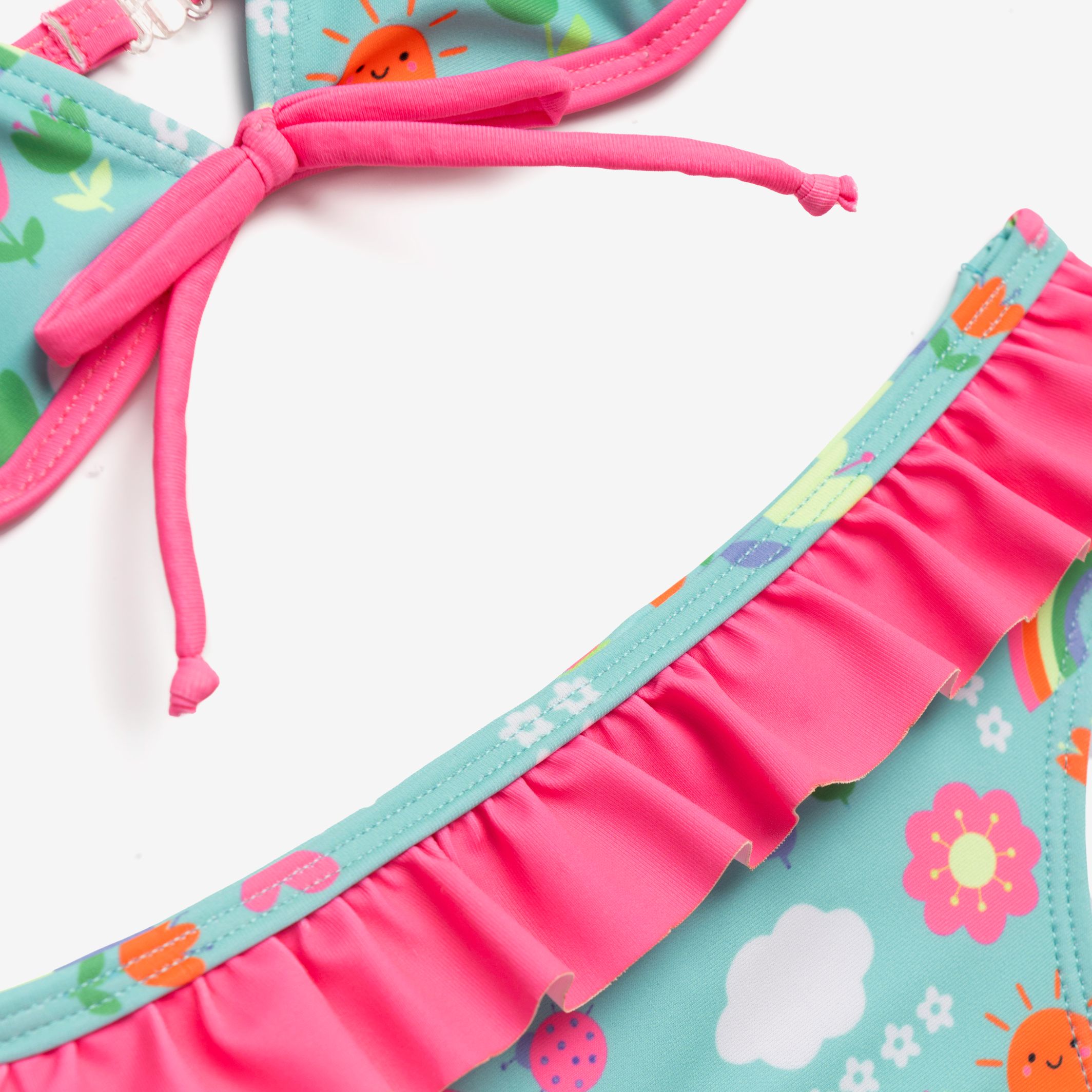 Μαγιό μπικίνι με τύπωμα σε χρώμα τυρκουάζ-φωσφορούχο ροζ allover για κορίτσι 1-6 ετών