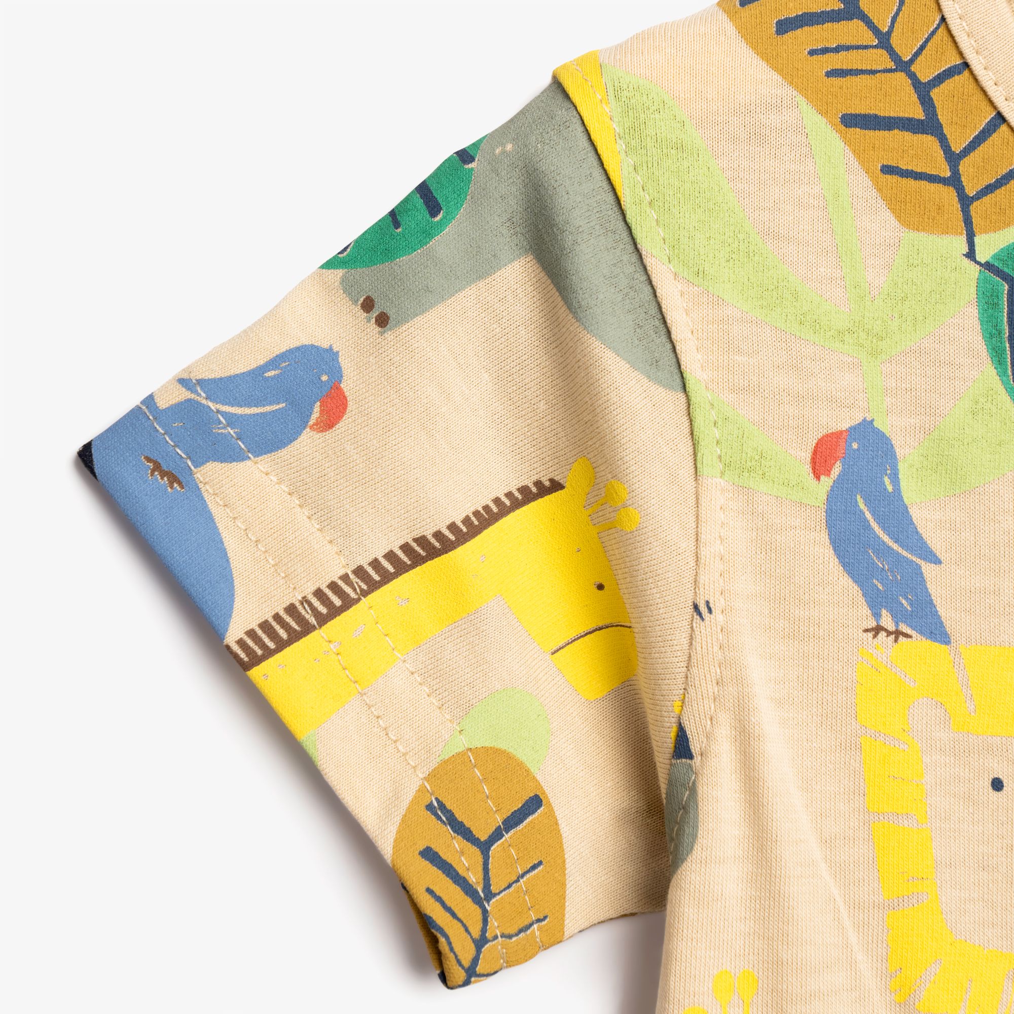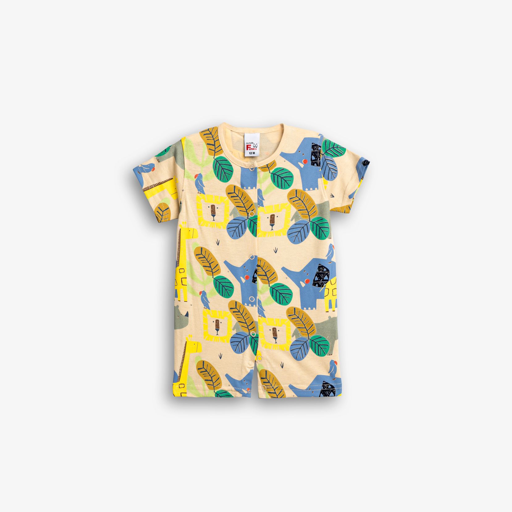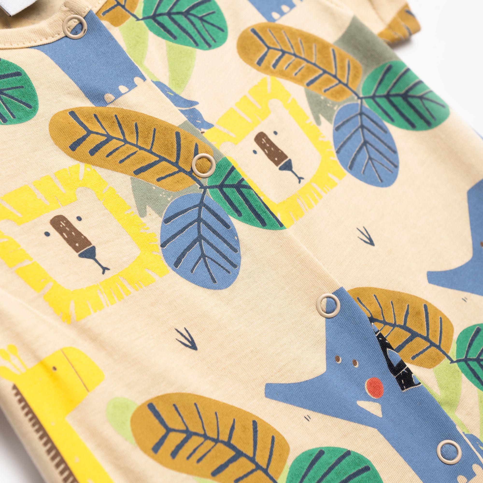 Φορμάκι κοντομάνικο κάλτσα με τύπωμα (ζωάκια) allover σε χρώμα μπέζ για αγόρι βρεφανάπτυξη