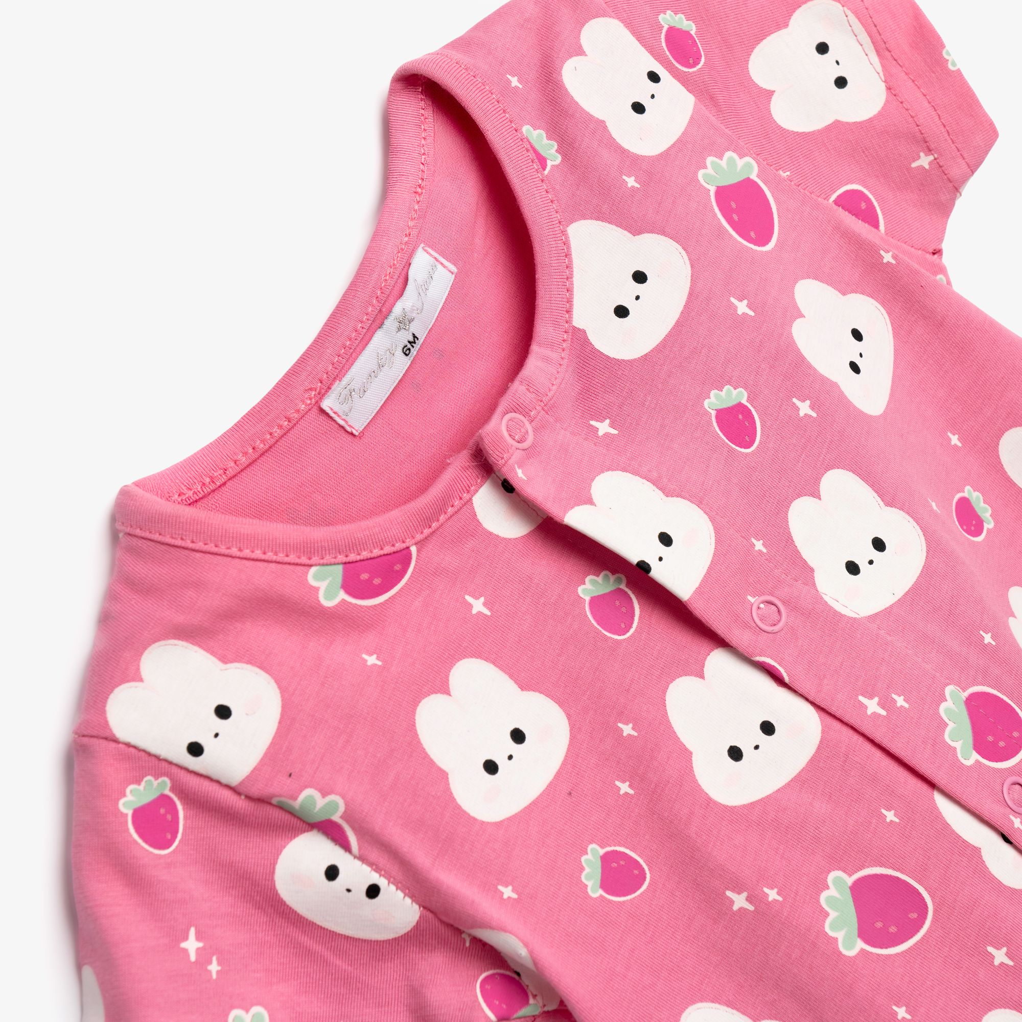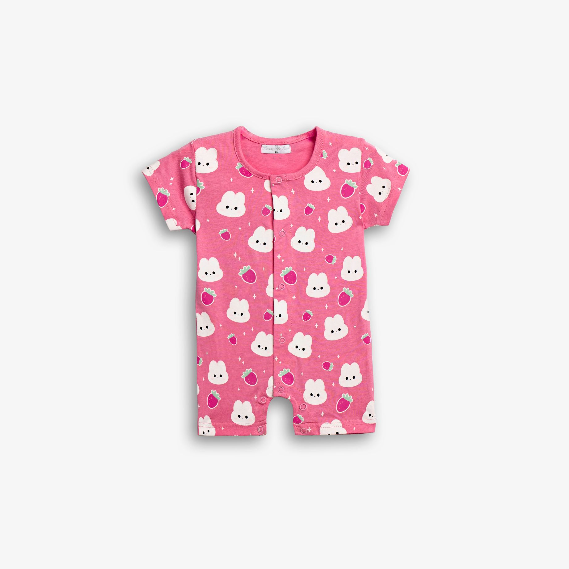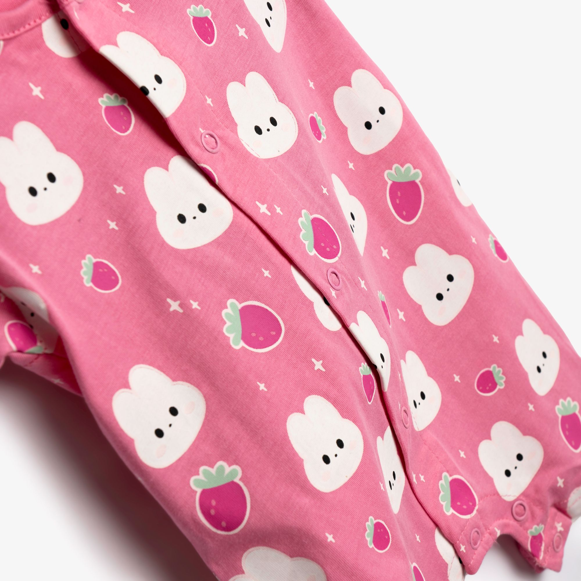 Φορμάκι κοντομάνικο κάλτσα με τύπωμα (κουνελάκια) allover σε χρώμα σκούρο ροζ για κορίτσι βρεφανάπτυξη