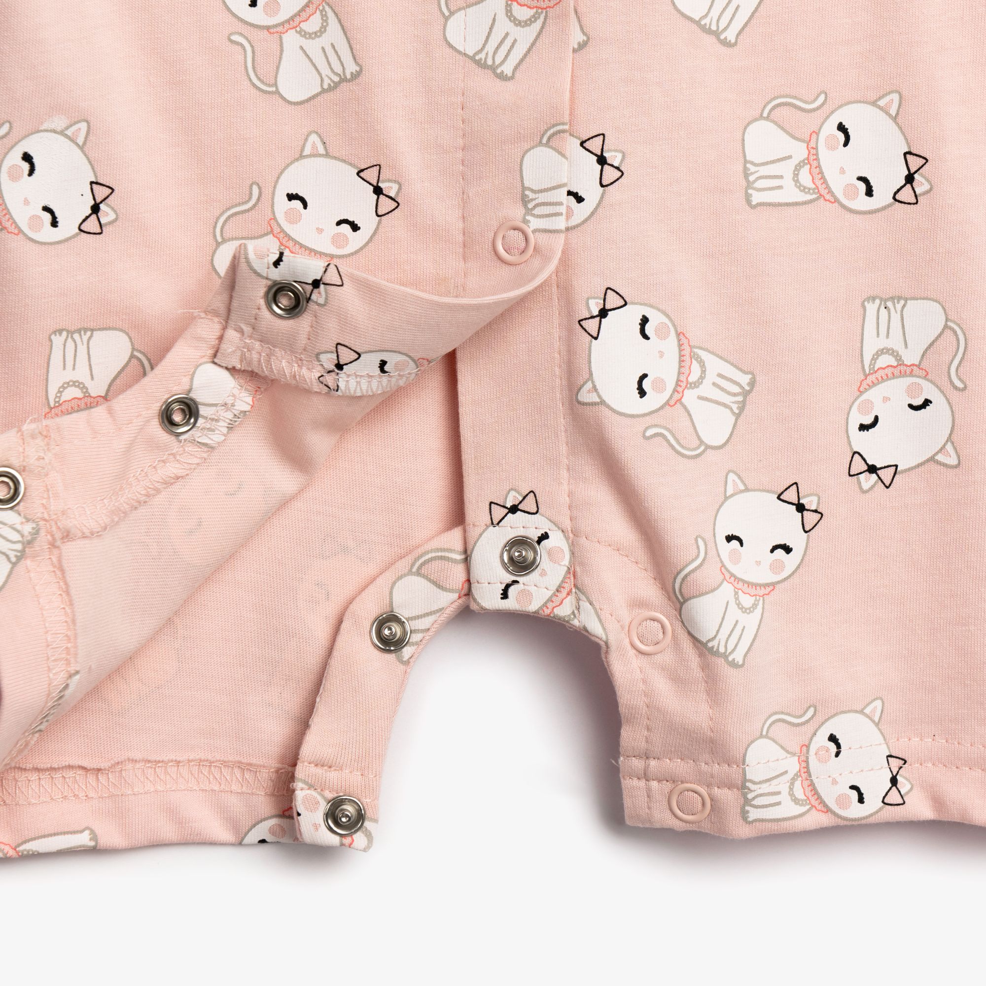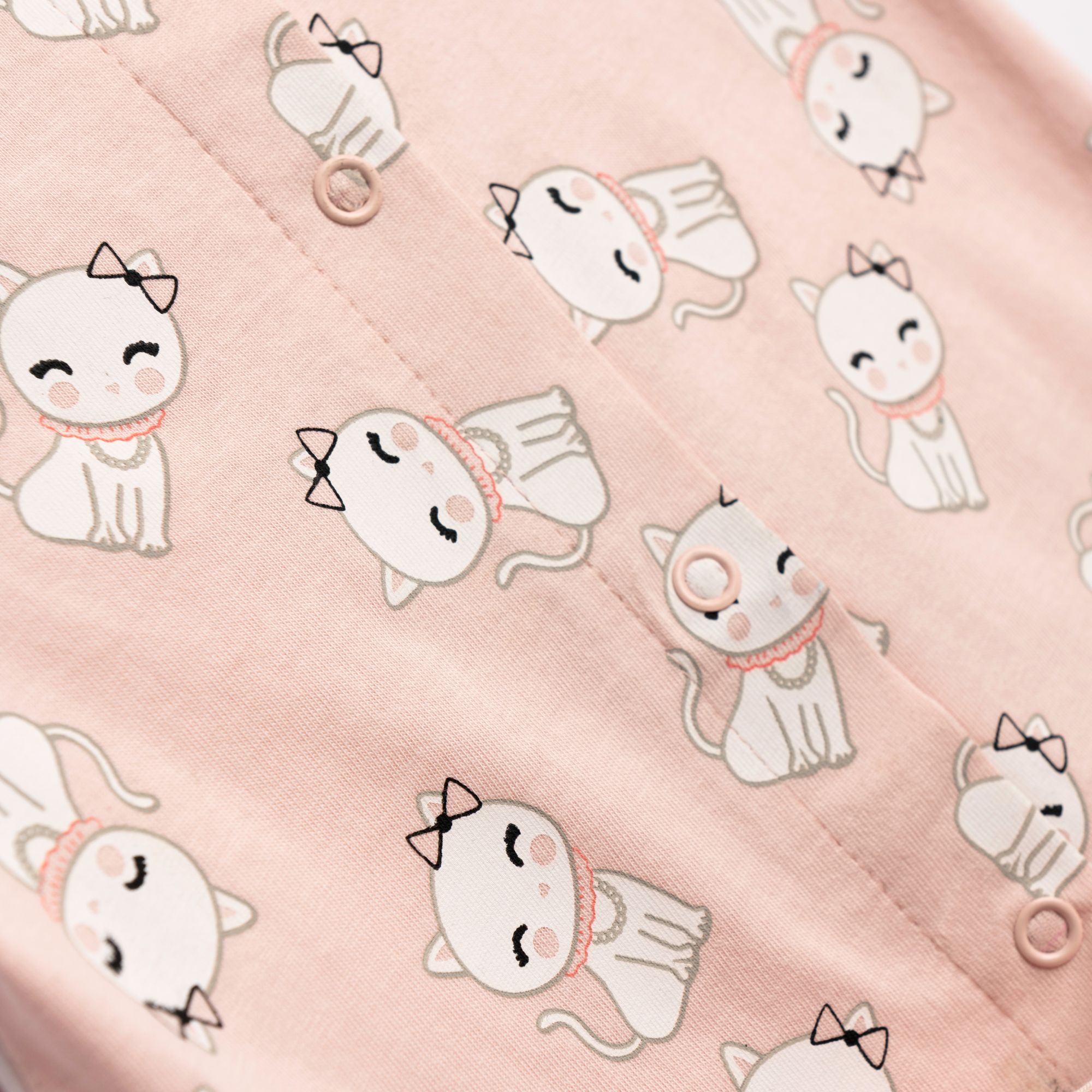 Φορμάκι κοντομάνικο κάλτσα με τύπωμα (γατάκια) allover σε χρώμα ροζ πούδρα για κορίτσι βρεφανάπτυξη