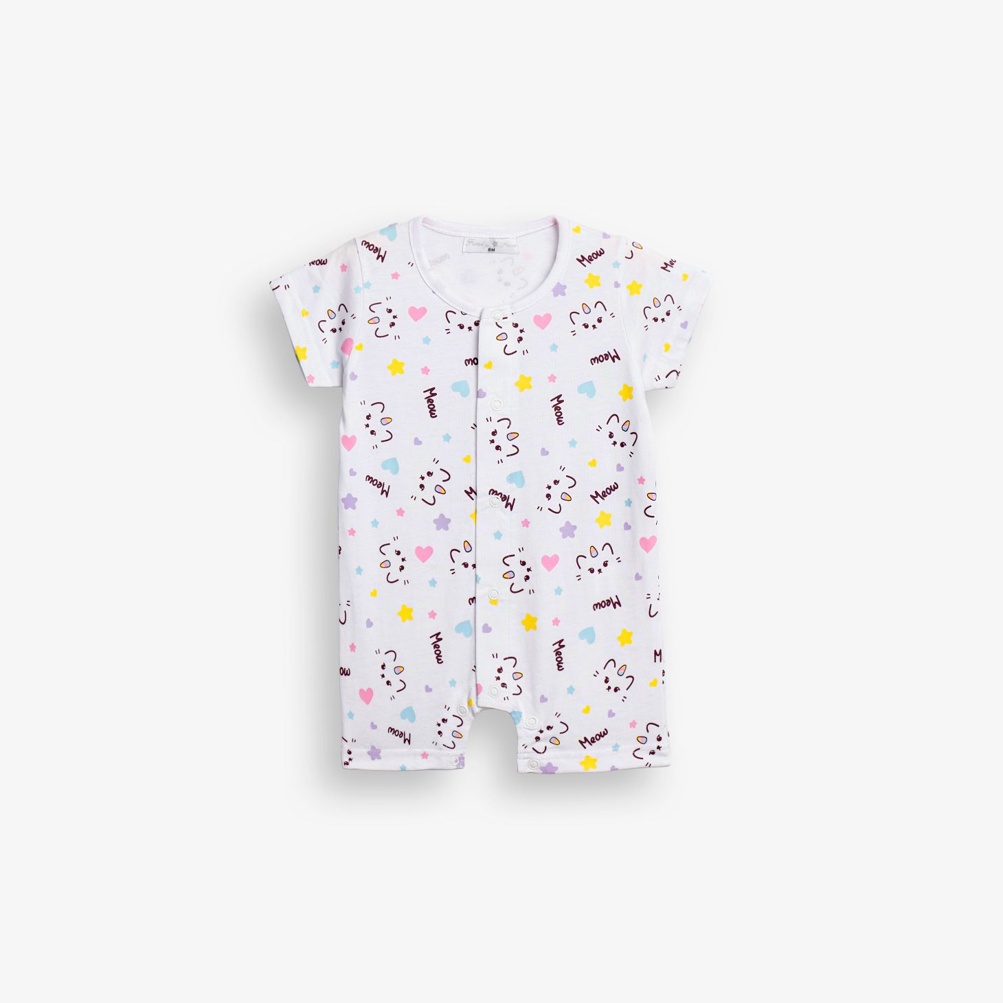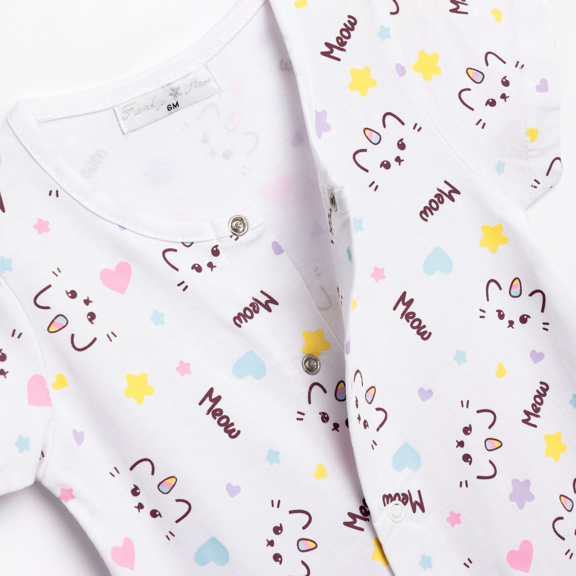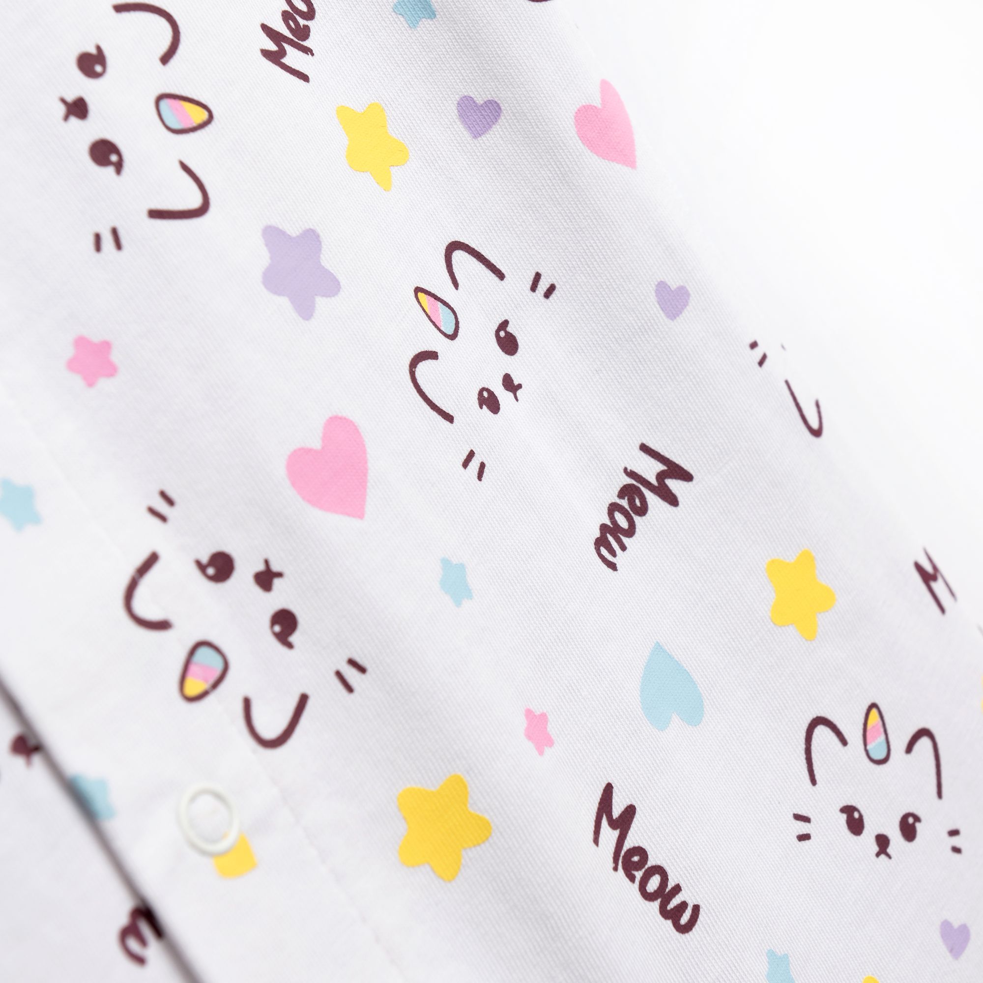 Φορμάκι κοντομάνικο κάλτσα με τύπωμα (γατάκια) allover σε χρώμα λευκό για κορίτσι βρεφανάπτυξη