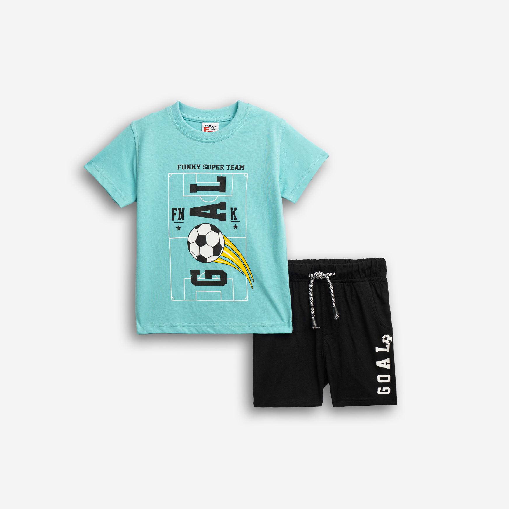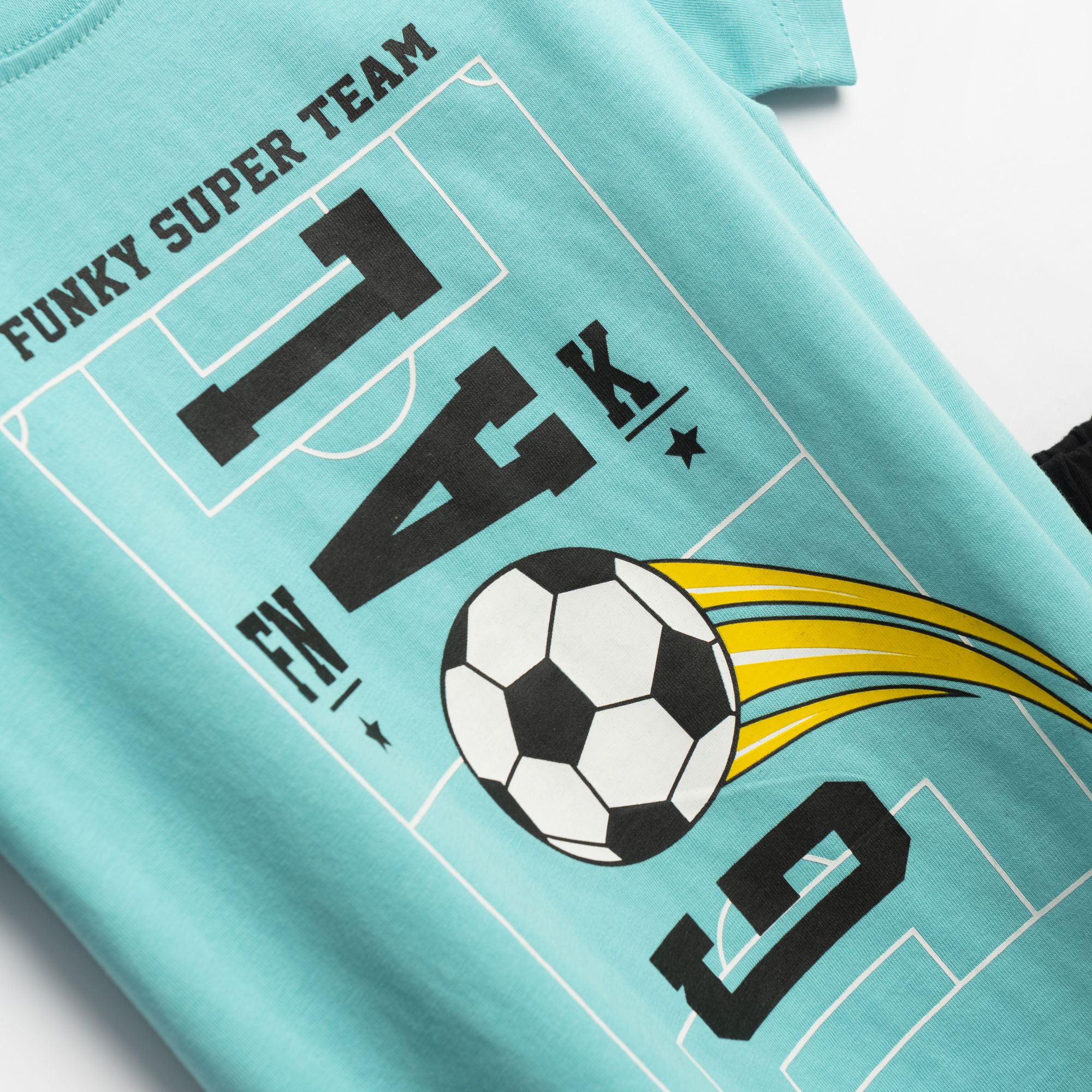 Σετ μπλούζα μακό με τύπωμα (goal) και βερμούδα πάνω από το γόνατο σε χρώμα τυρκουάζ/μαύρο για αγόρι 1-6 ετών