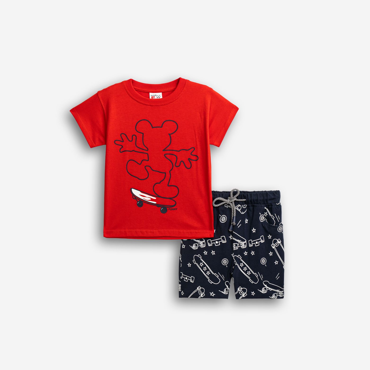 Σετ μπλούζα μακό με τύπωμα (skater) και βερμούδα πάνω από το γόνατο με τύπωμα allover σε χρώμα κόκκινο/μπλέ για αγόρι 1-6 ετών