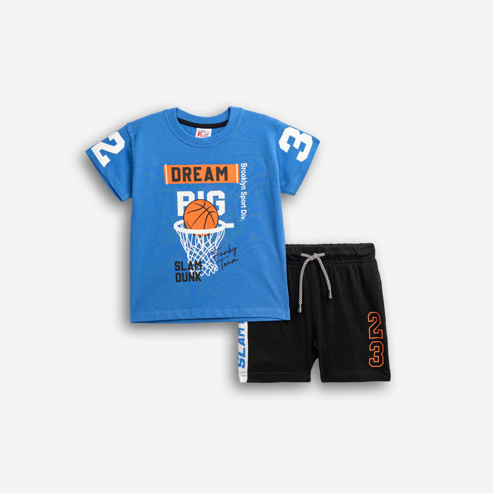 Σετ μπλούζα μακό με τύπωμα (dream big) και βερμούδα πάνω από το γόνατο με τύπωμα σε χρώμα ανοιχτό ρουά/μαύρο-λευκό για αγόρι 1-6 ετών