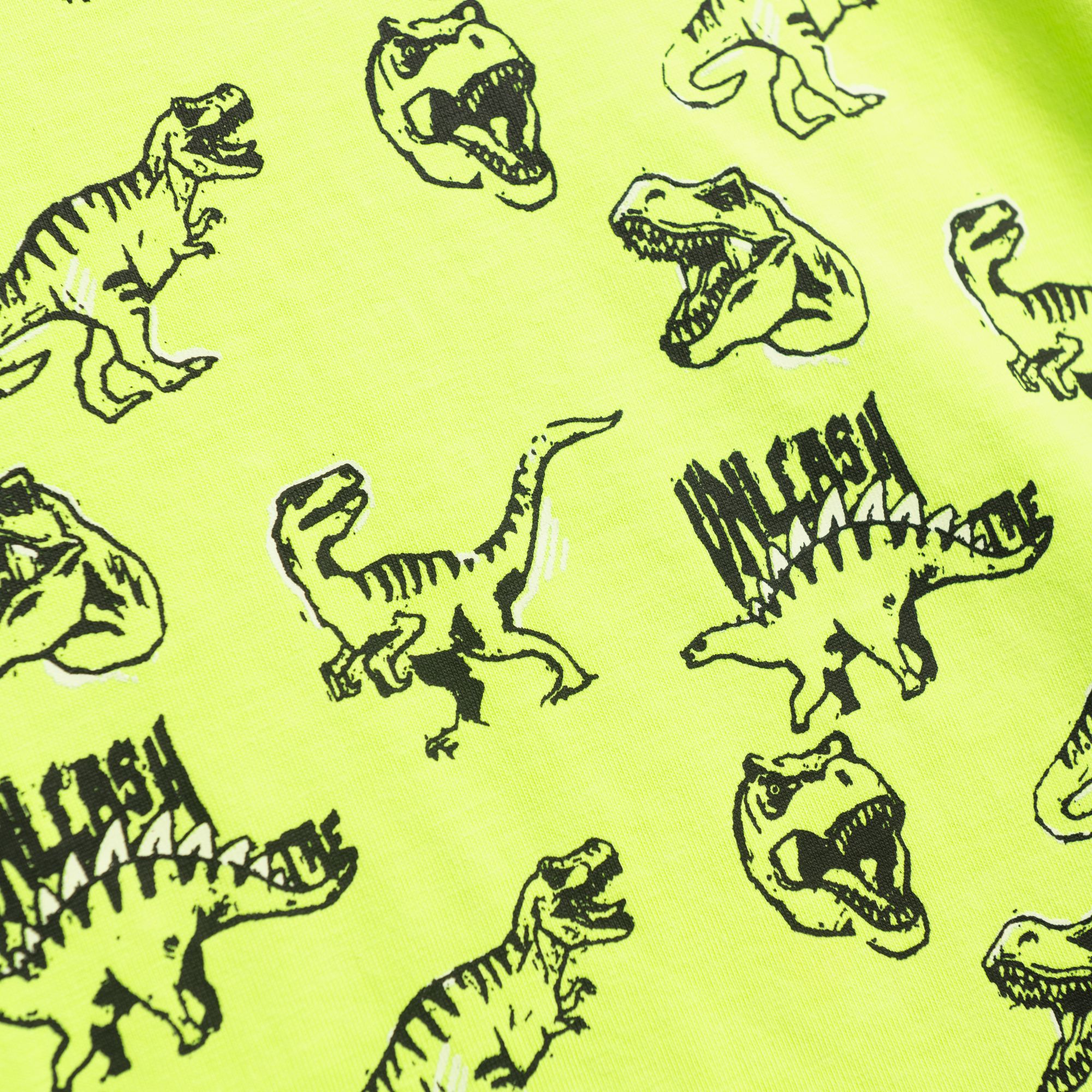 Σετ μπλούζα μακό με τύπωμα (δεινόσαυροι) allover και βερμούδα πάνω από το γόνατο με τύπωμα σε χρώμα φωσφορούχο πεπονί/μαύρο-φωσφορούχο πεπονί ανοιχτό χακί για αγόρι 1-6 ετών