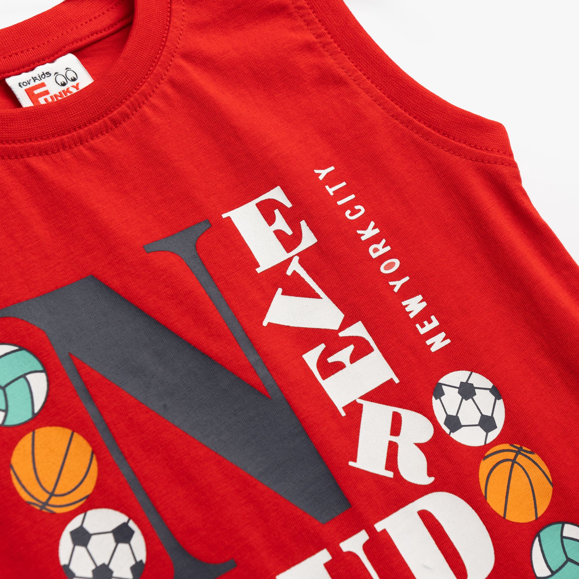 Σετ μπλούζα μακό αμάνικο με τύπωμα (never give up) και βερμούδα πάνω από το γόνατο σε χρώμα κόκκινο/μπλέ για αγόρι 1-6 ετών