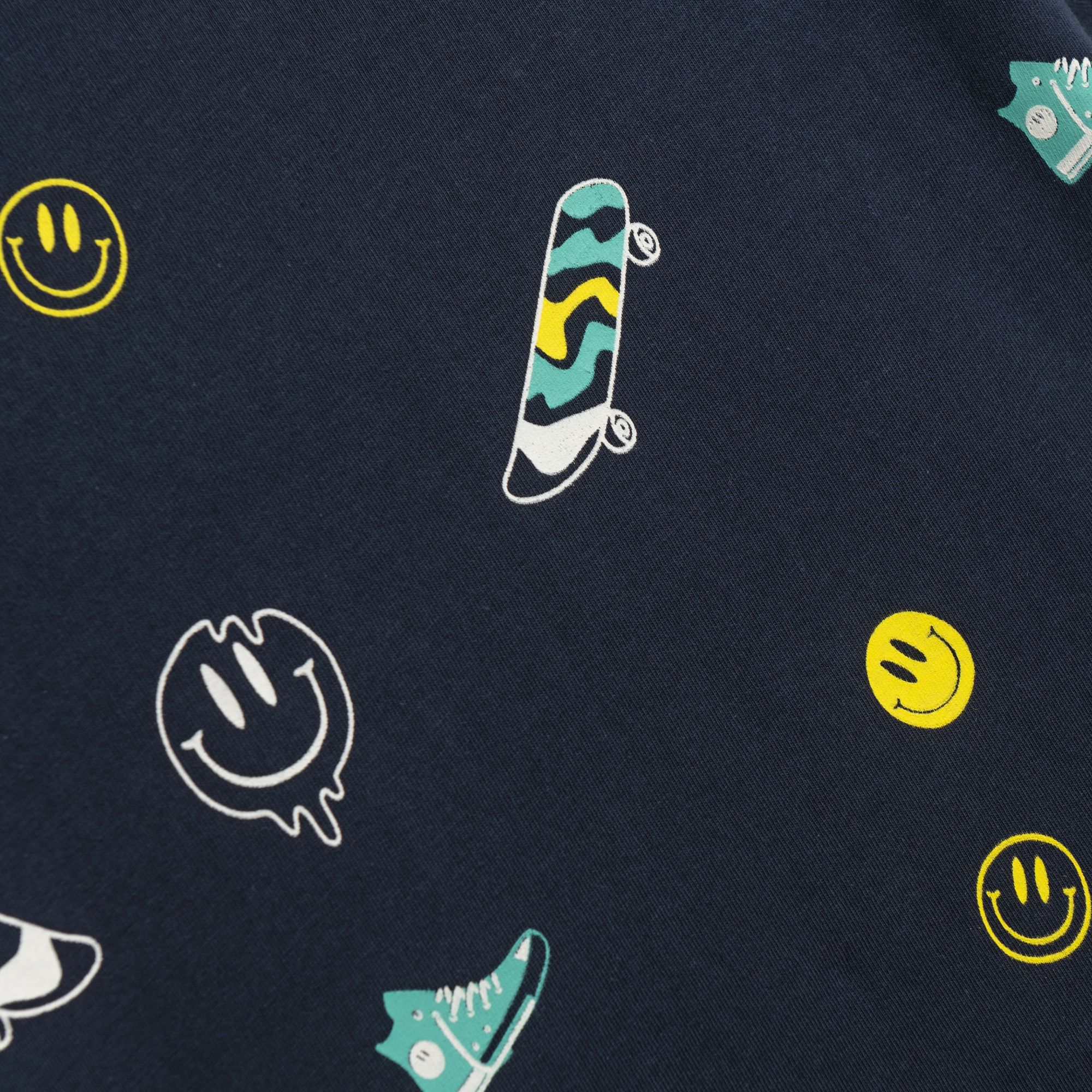 Σετ μπλούζα με τύπωμα (φατσούλες και skate) allover και βερμούδα σταθερή πάνω από το γόνατο με τσέπες σε χρώμα μπλέ/τυρκουάζ για αγόρι 1-6 ετών