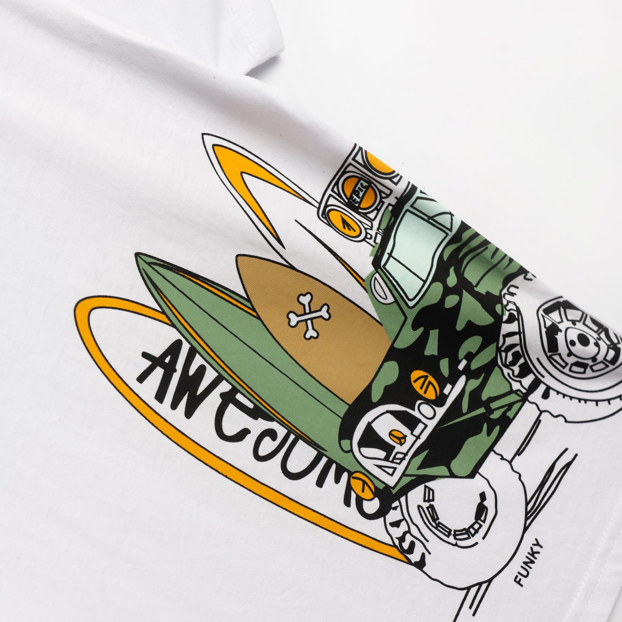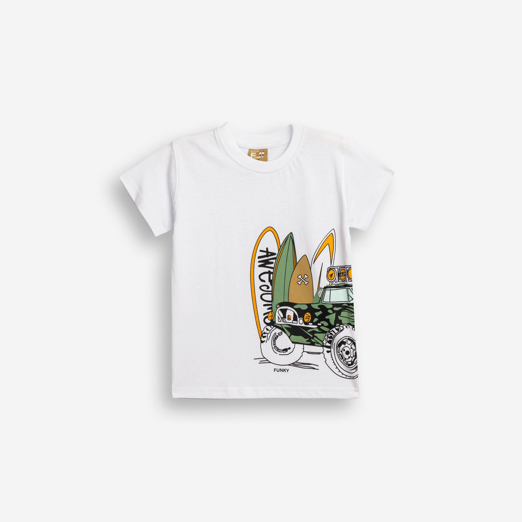 Μπλούζα κοντομάνικη κάλτσα με τύπωμα (σανίδες surf) σε χρώμα λευκό για αγόρι 1-6 ετών
