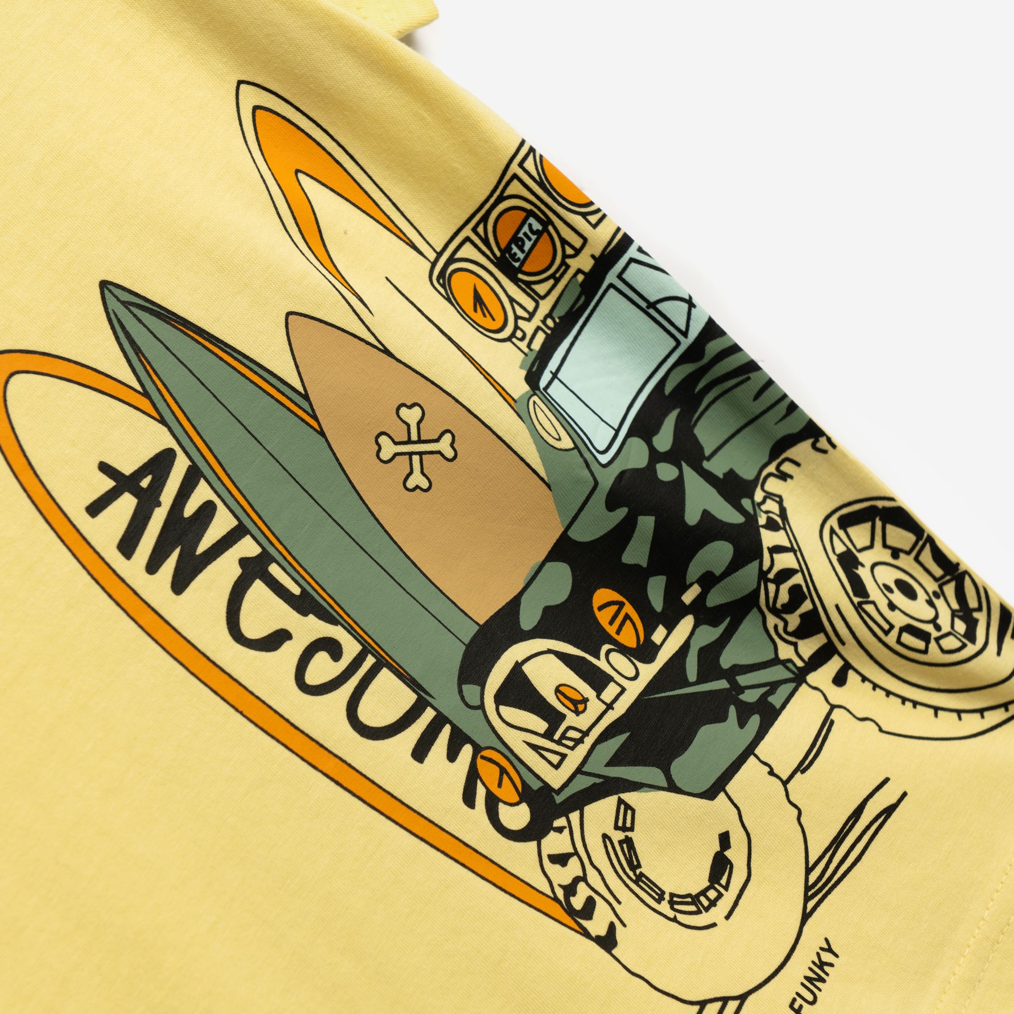 Μπλούζα κοντομάνικη κάλτσα με τύπωμα (σανίδες surf) σε χρώμα ανοιχτό λεμονί για αγόρι 1-6 ετών