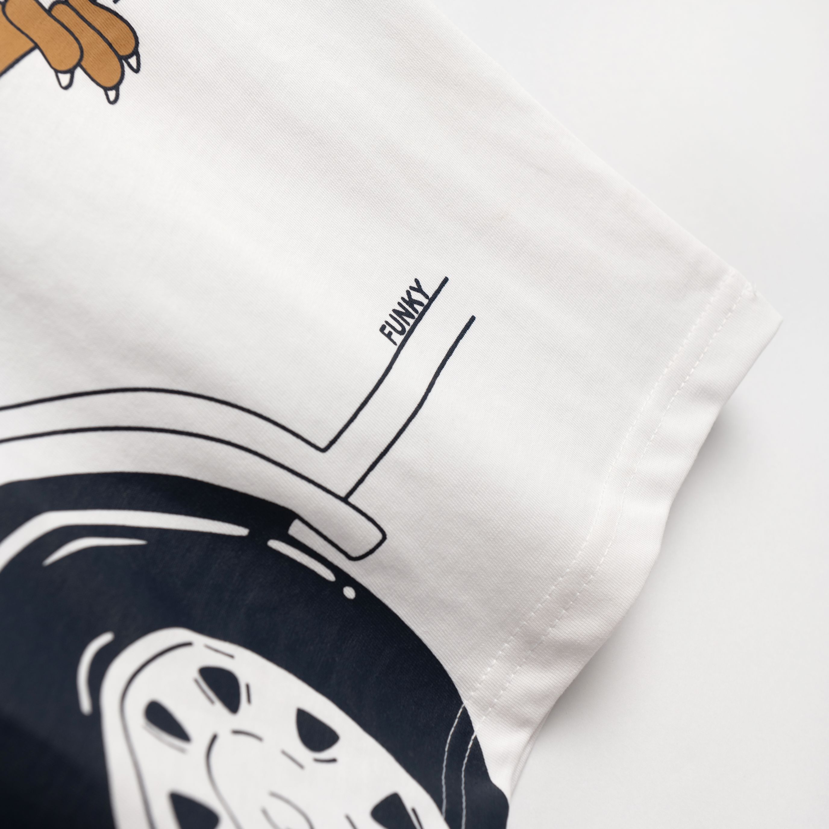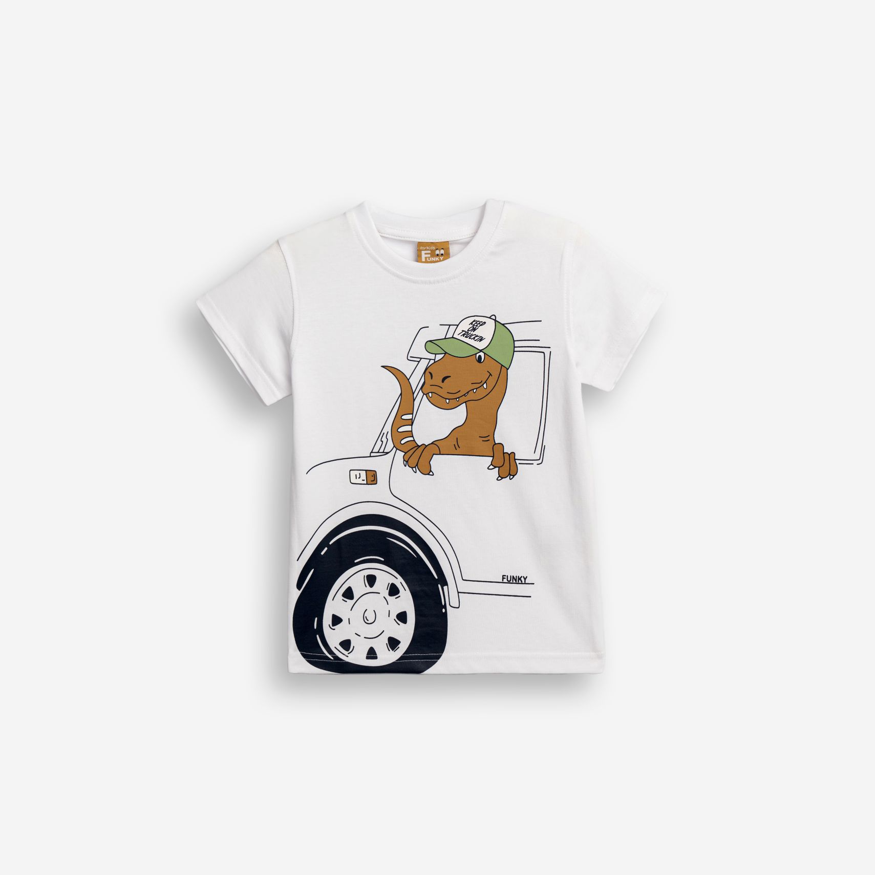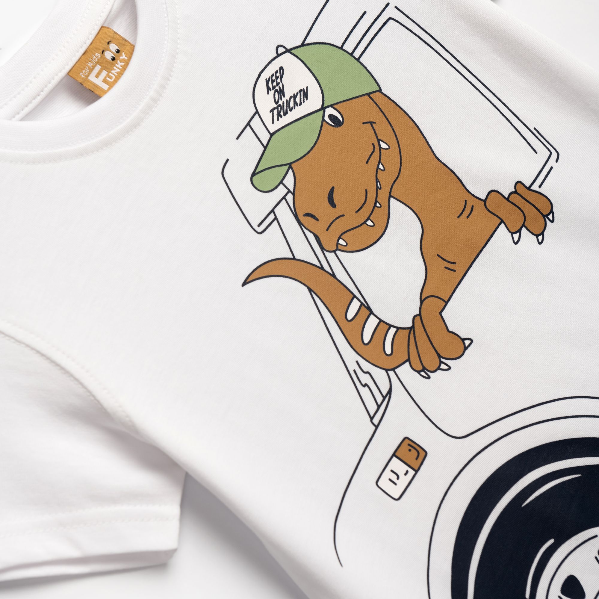 Μπλούζα κοντομάνικη κάλτσα με τύπωμα (δεινόσαυρος) σε χρώμα λευκό για αγόρι 1-6 ετών