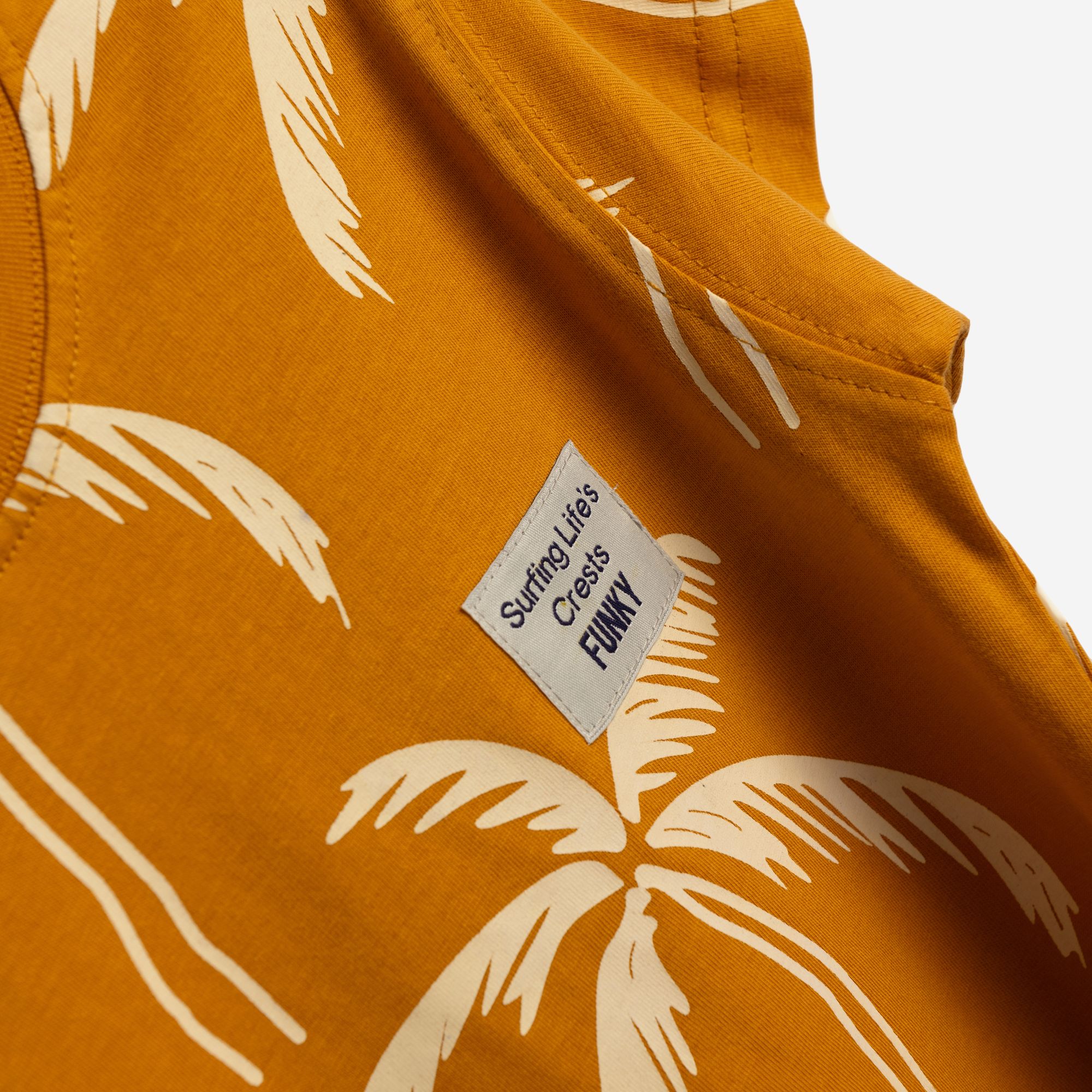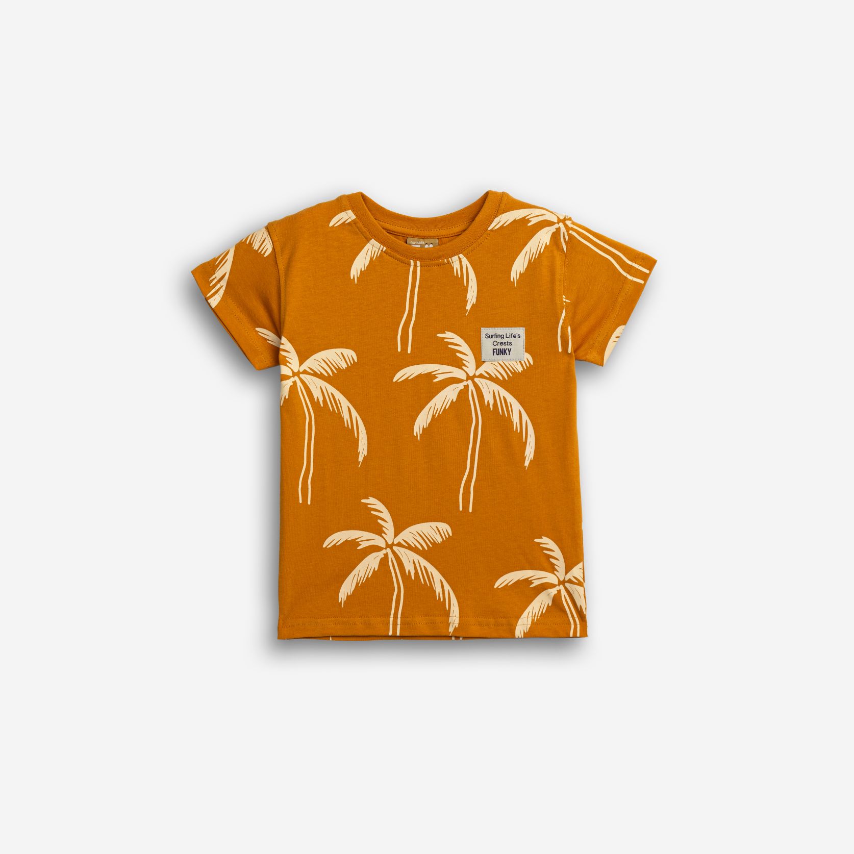 Μπλούζα κοντομάνικη φλάμα με τύπωμα (φοίνικες) allover σε χρώμα τζίντζερ για αγόρι 1-6 ετών