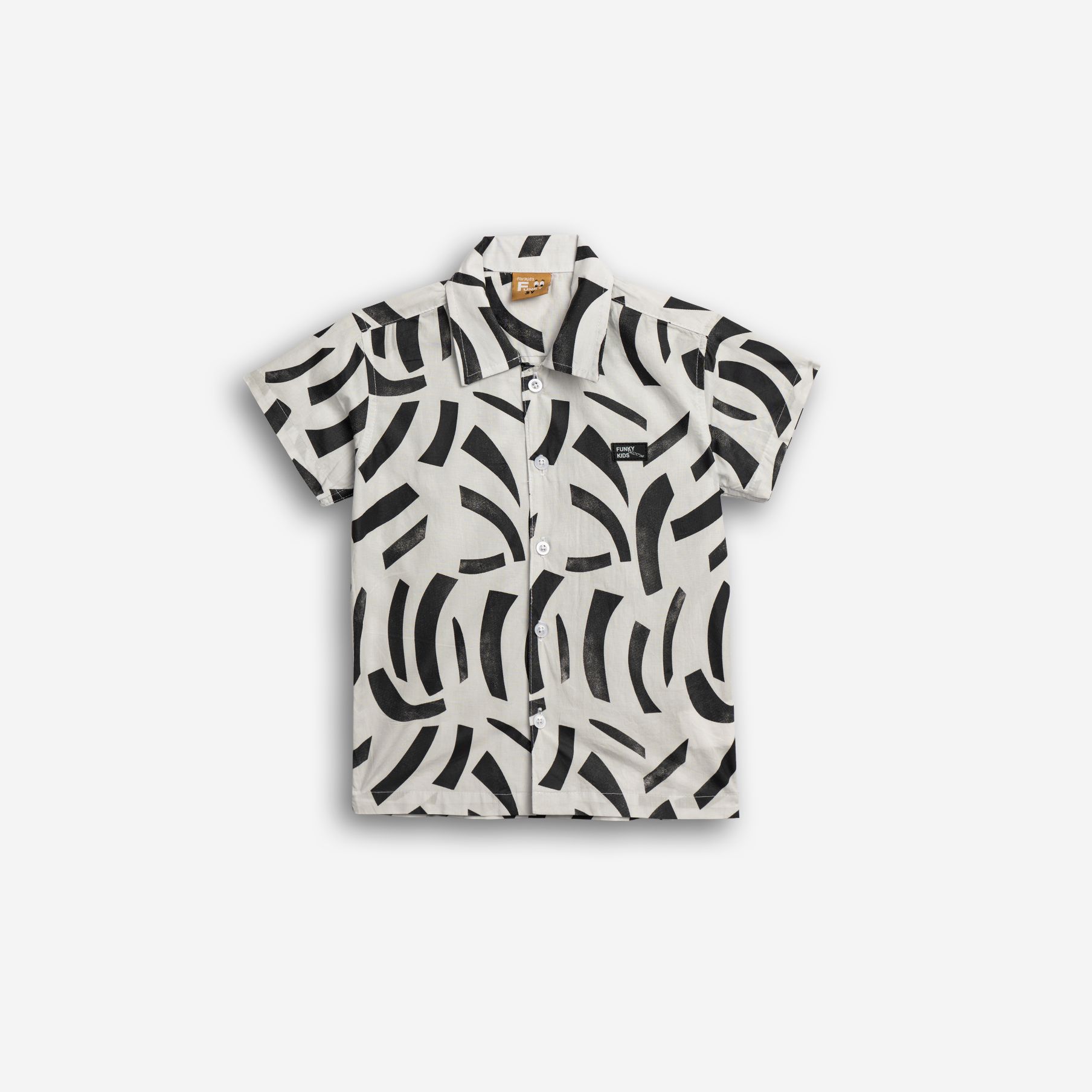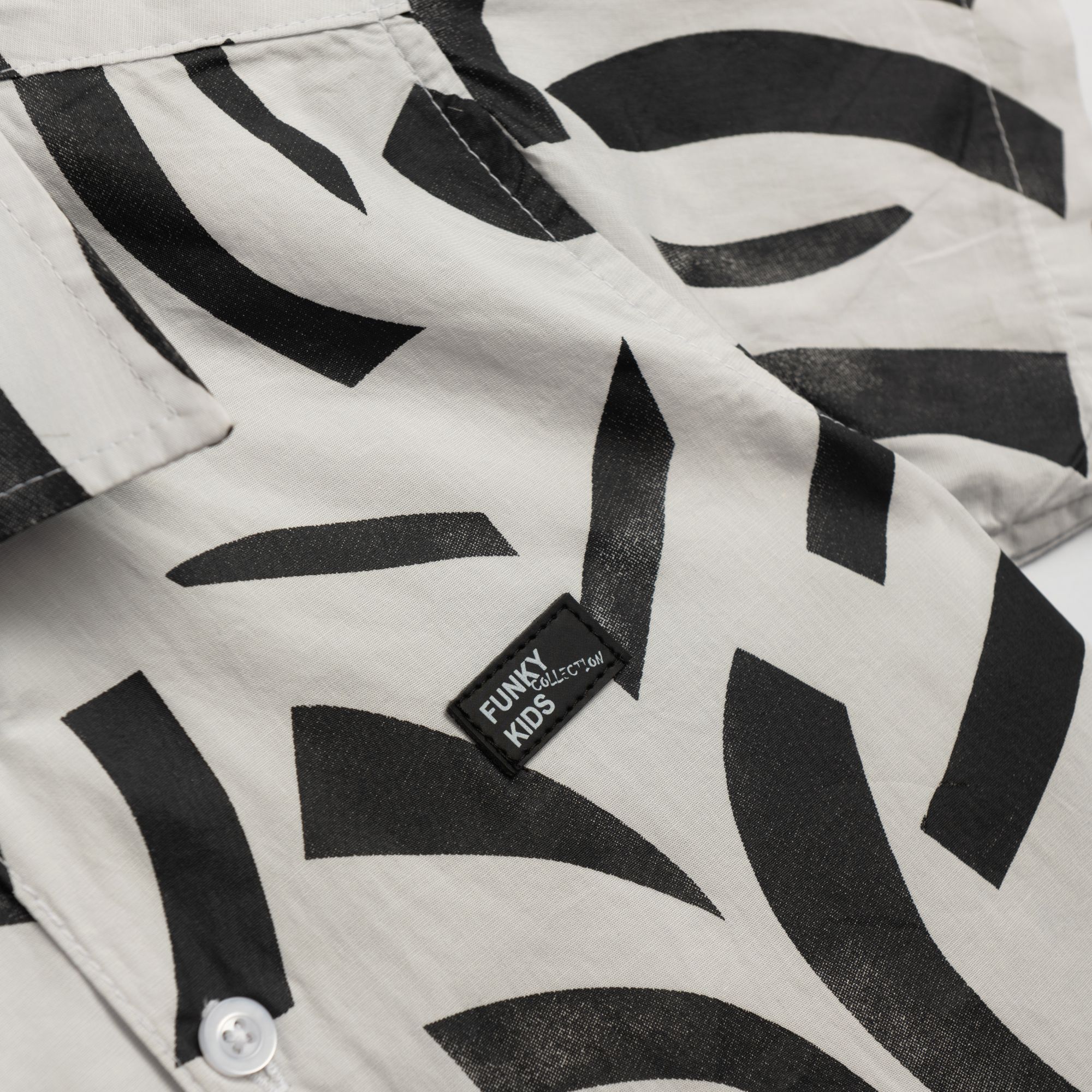 Πουκάμισο κοντομάνικο ποπλίνα με τύπωμα allover σε χρώμα εκρού για αγόρι 1-6 ετών