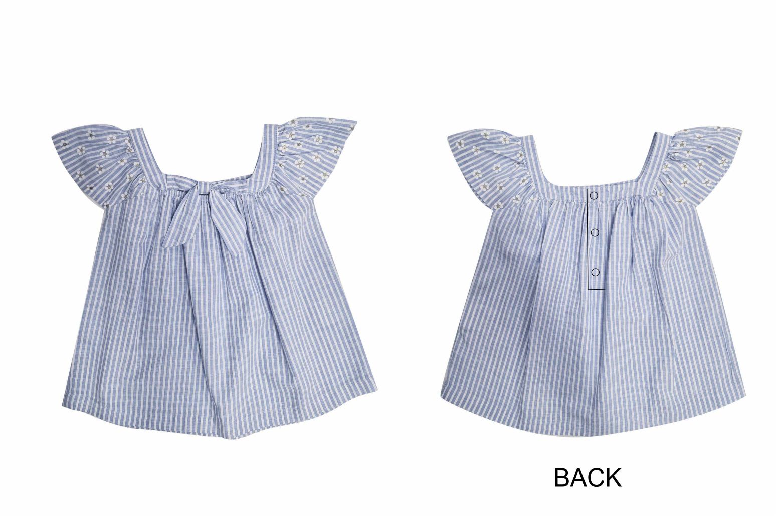 Μπλούζα κοντομάνικη ριγέ με φιόγκο στο μπροστά μέρος και σχέδιο (χαμομήλι) στα μανίκια σε χρώμα λευκό-σιέλ για κορίτσι 6-16 ετών