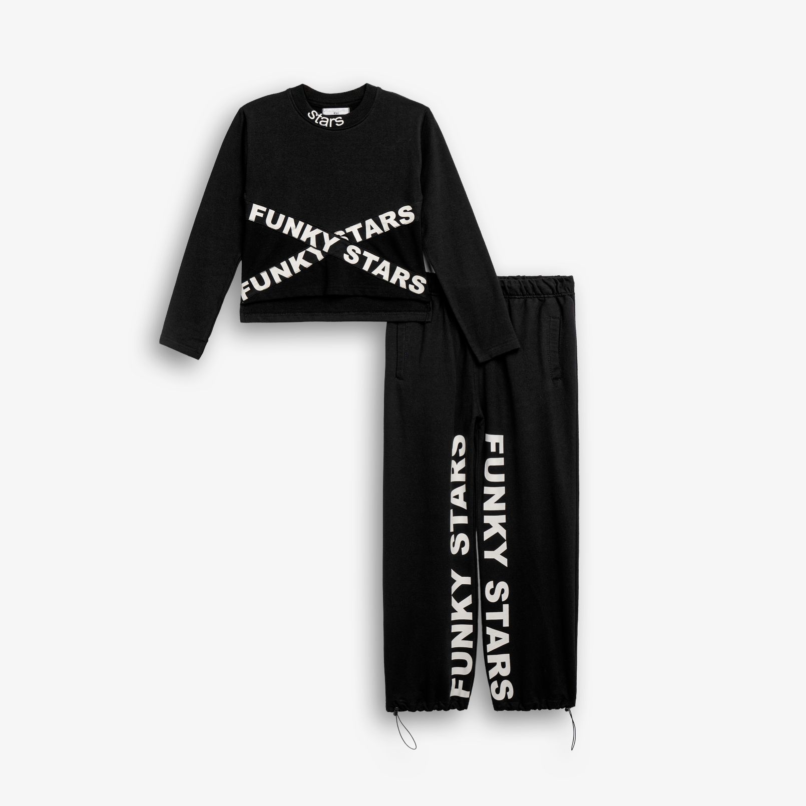 Φόρμα φούτερ με τύπωμα (FUNKY) και παντελόνι φόρμας με τύπωμα και λάστιχο σε χρώμα μαύρο/μαύρο για κορίτσι 6-16 ετών