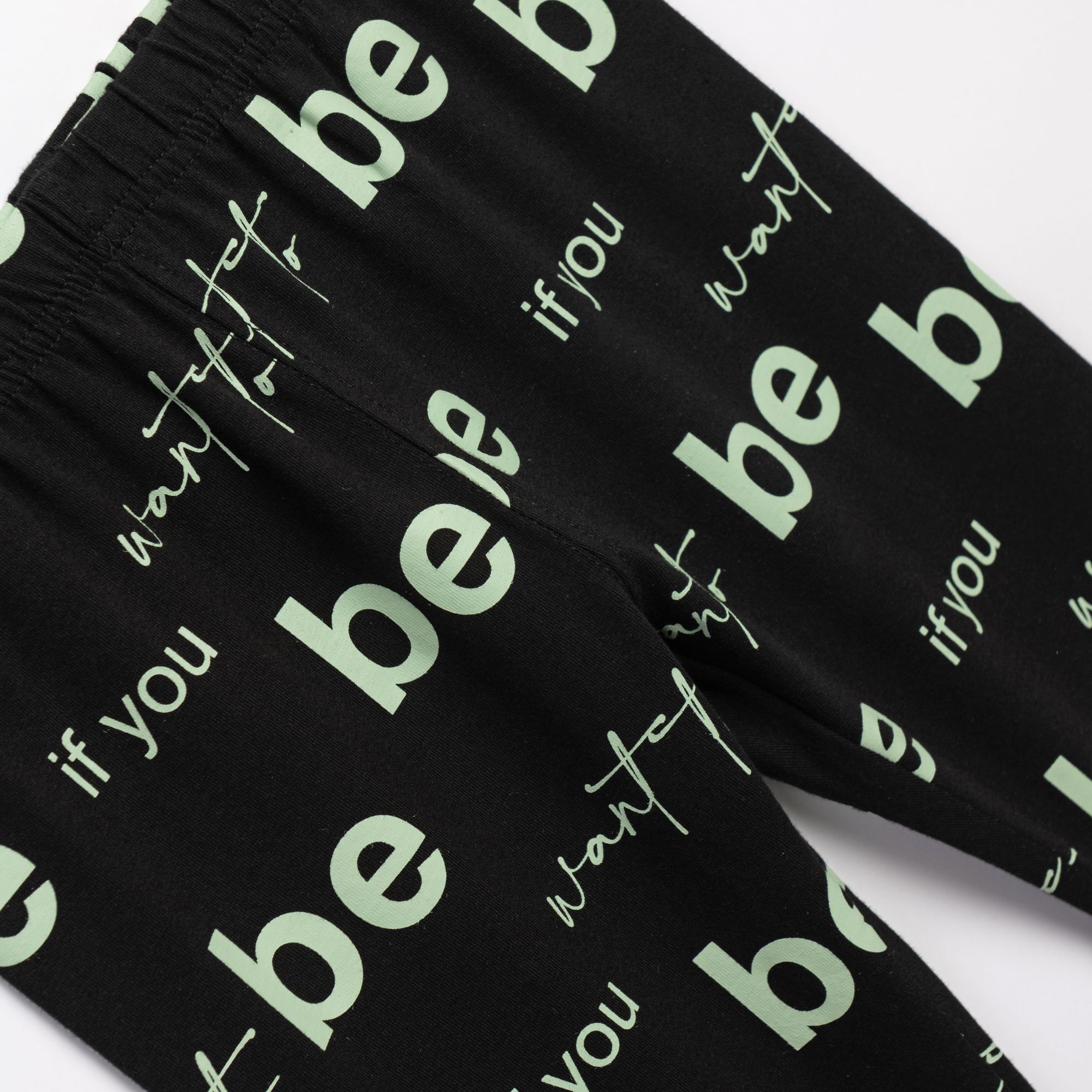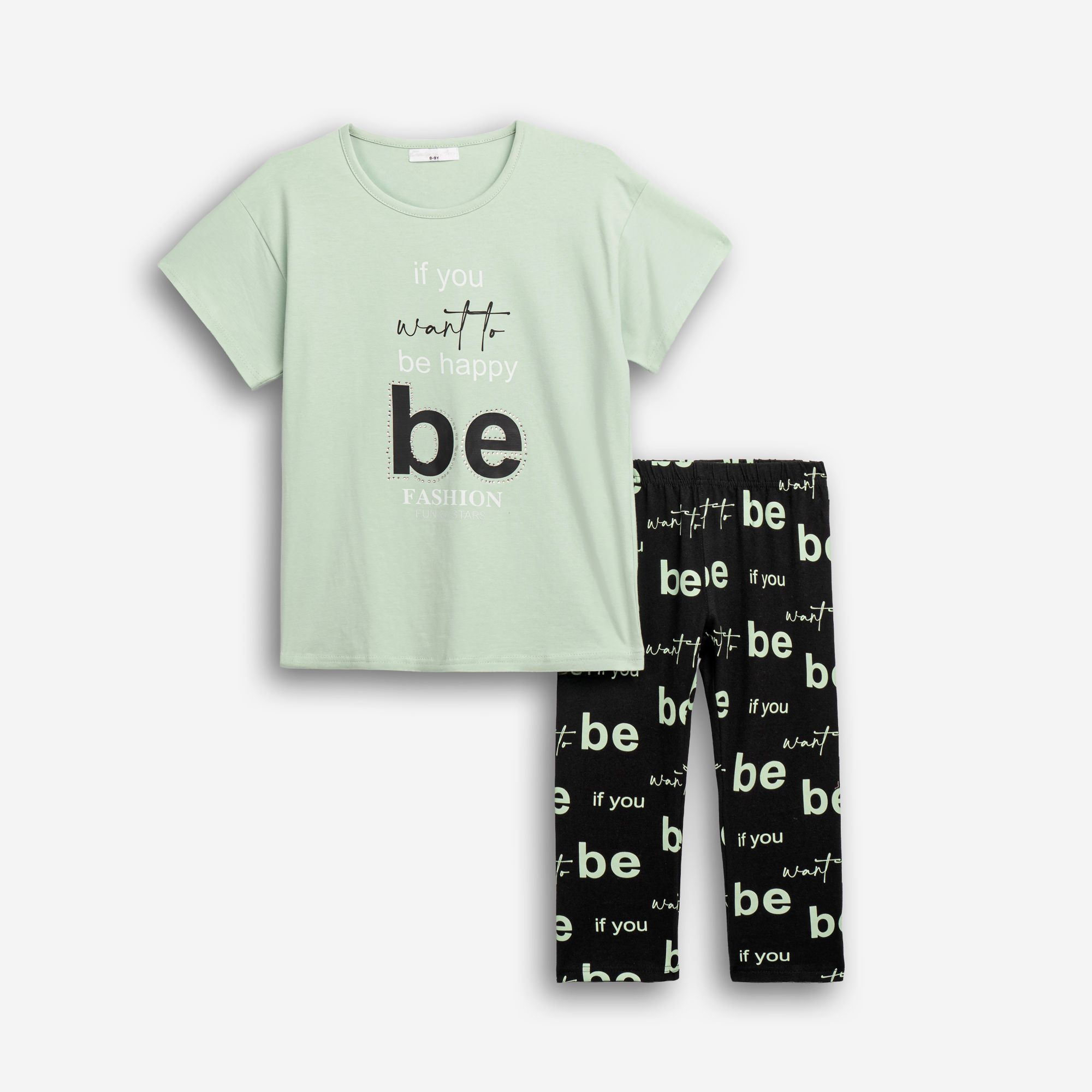 Μπλουζοφόρεμα με τύπωμα (γράμματα) και κολάν με τύπωμα allover κάλτσα κάπρι λύκρα σε χρώμα φυστικί/μαύρο για κορίτσι 6-16 ετών