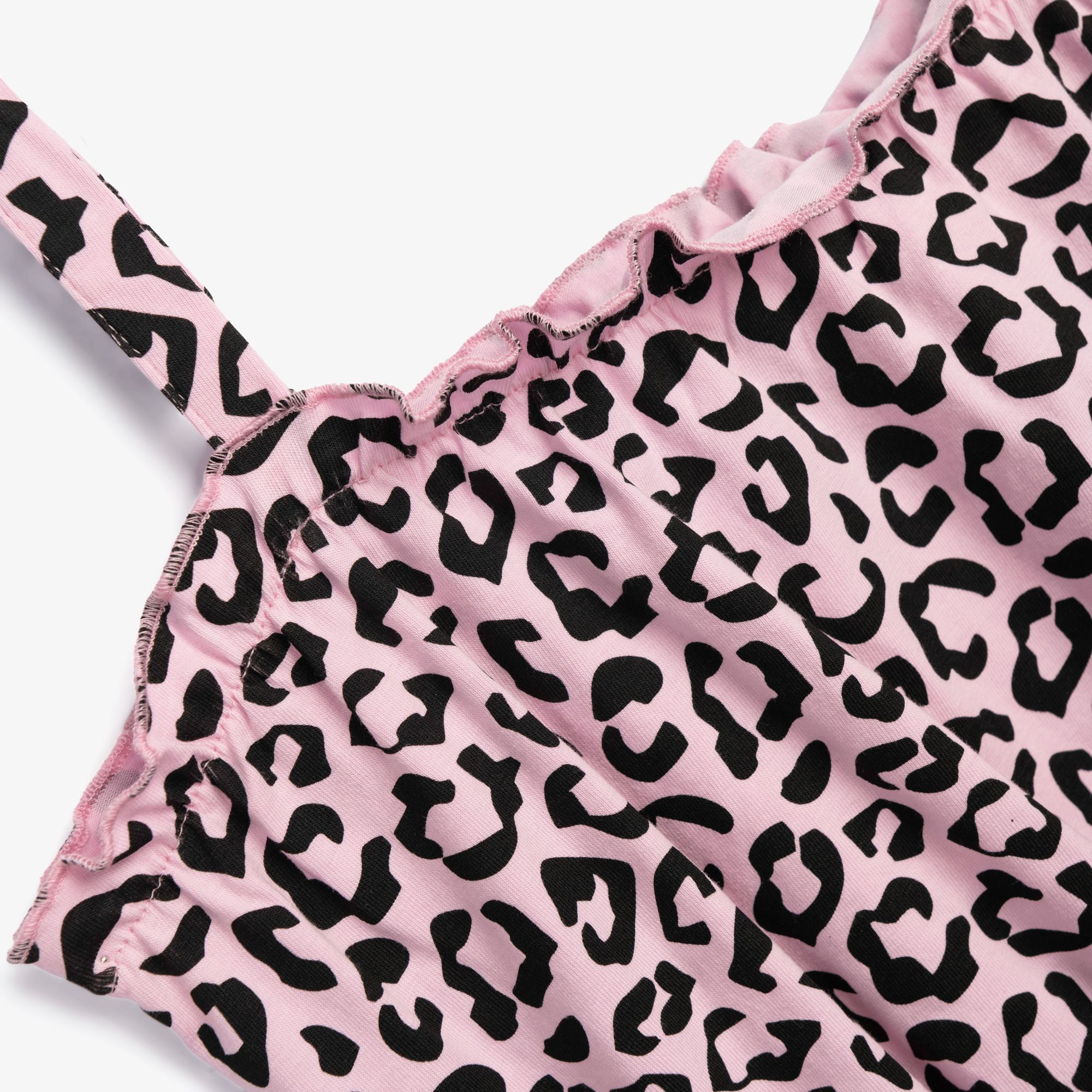 Σετ μπλουζάκι με τύπωμα (λεοπάρ) allover και σόρτς κάλτσα λύκρα με τύπωμα σε χρώμα ρόζ λεβάντα/μαύρο για κορίτσι 6-16 ετών