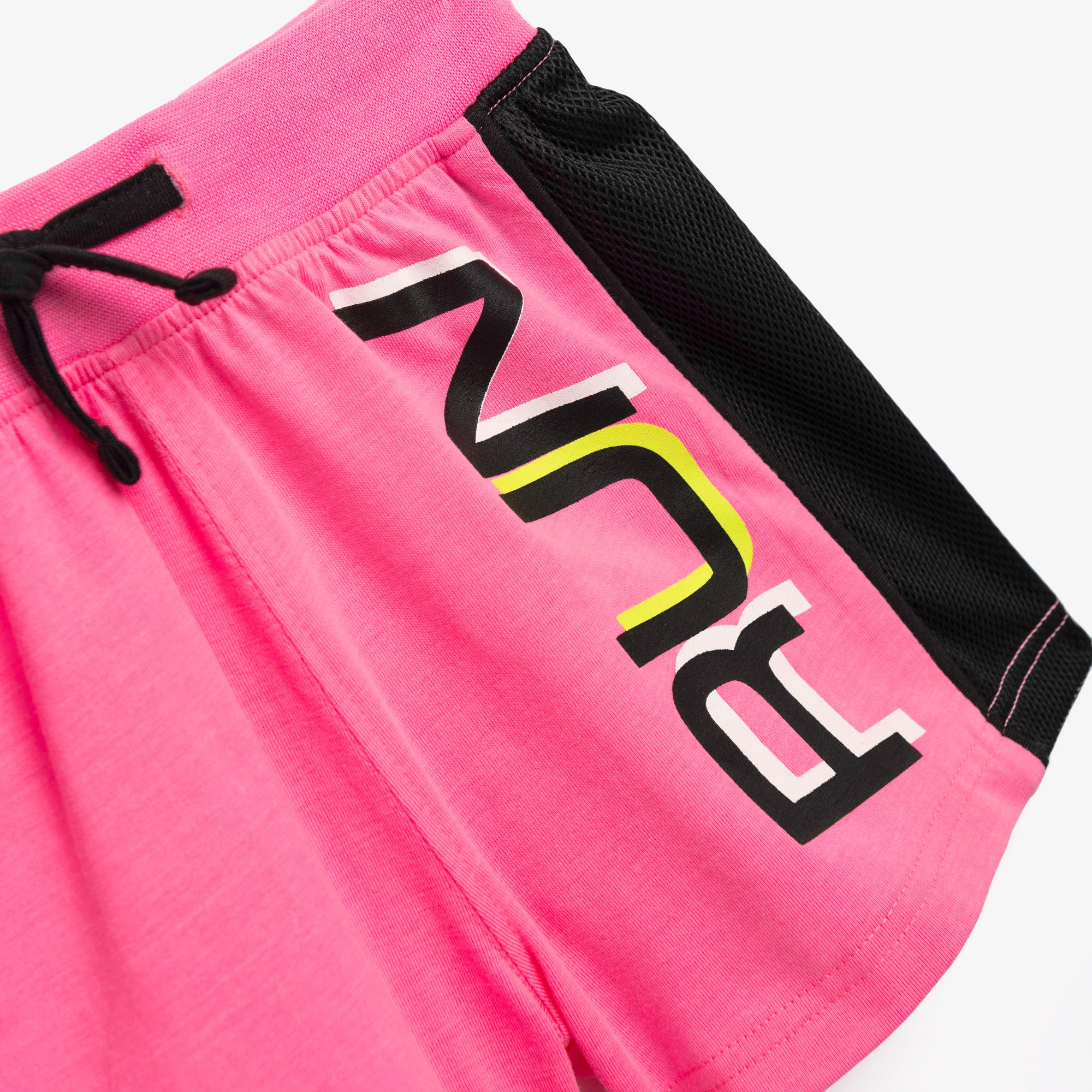 Σετ μπλουζάκι με τύπωμα (run) και σόρτς κάλτσα λύκρα με τύπωμα σε χρώμα μαύρο/φωσφορούχο ρόζ για κορίτσι 6-16 ετών