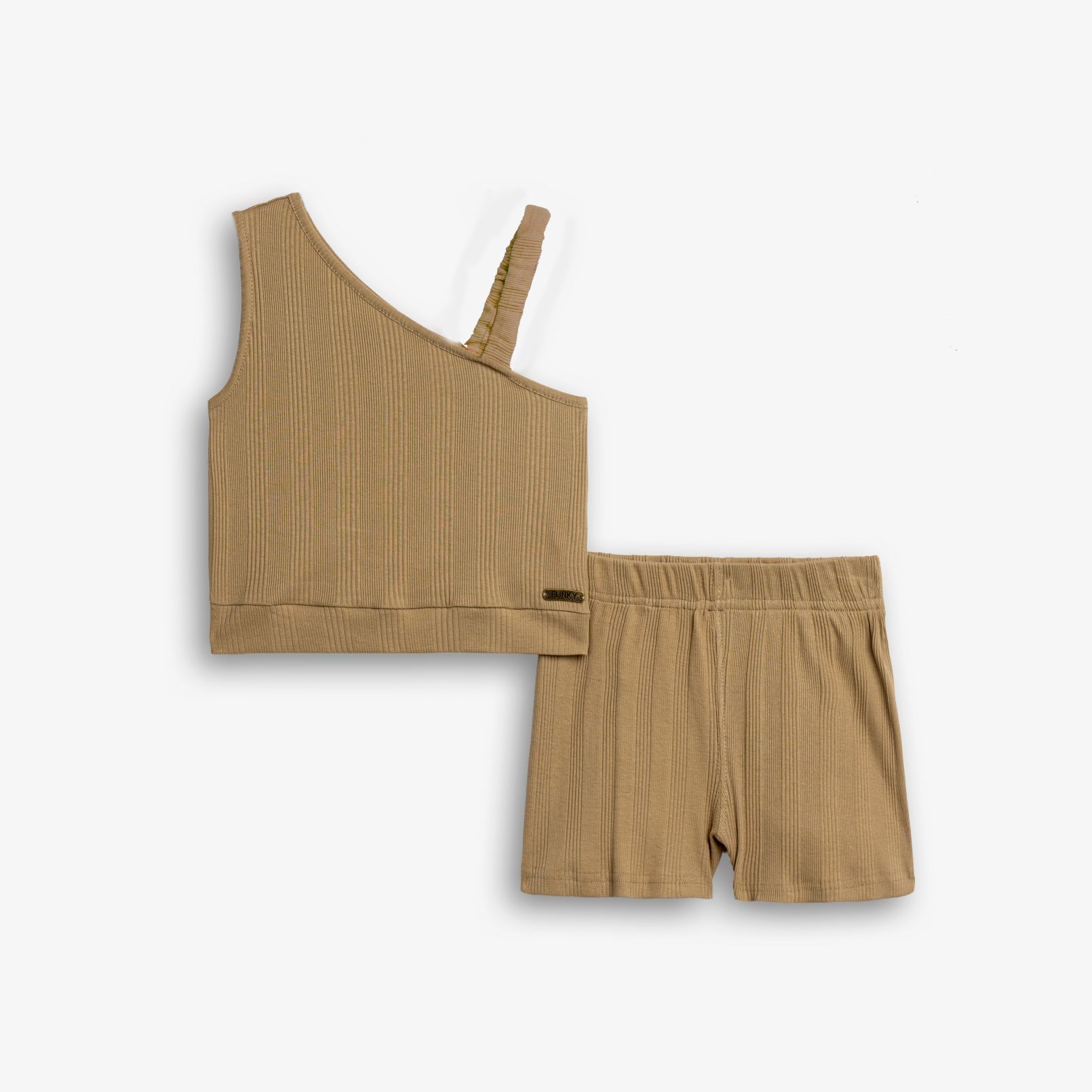 Σετ μπλουζάκι και σόρτς ριπ σε χρώμα μόκα/μόκα για κορίτσι 6-16 ετών