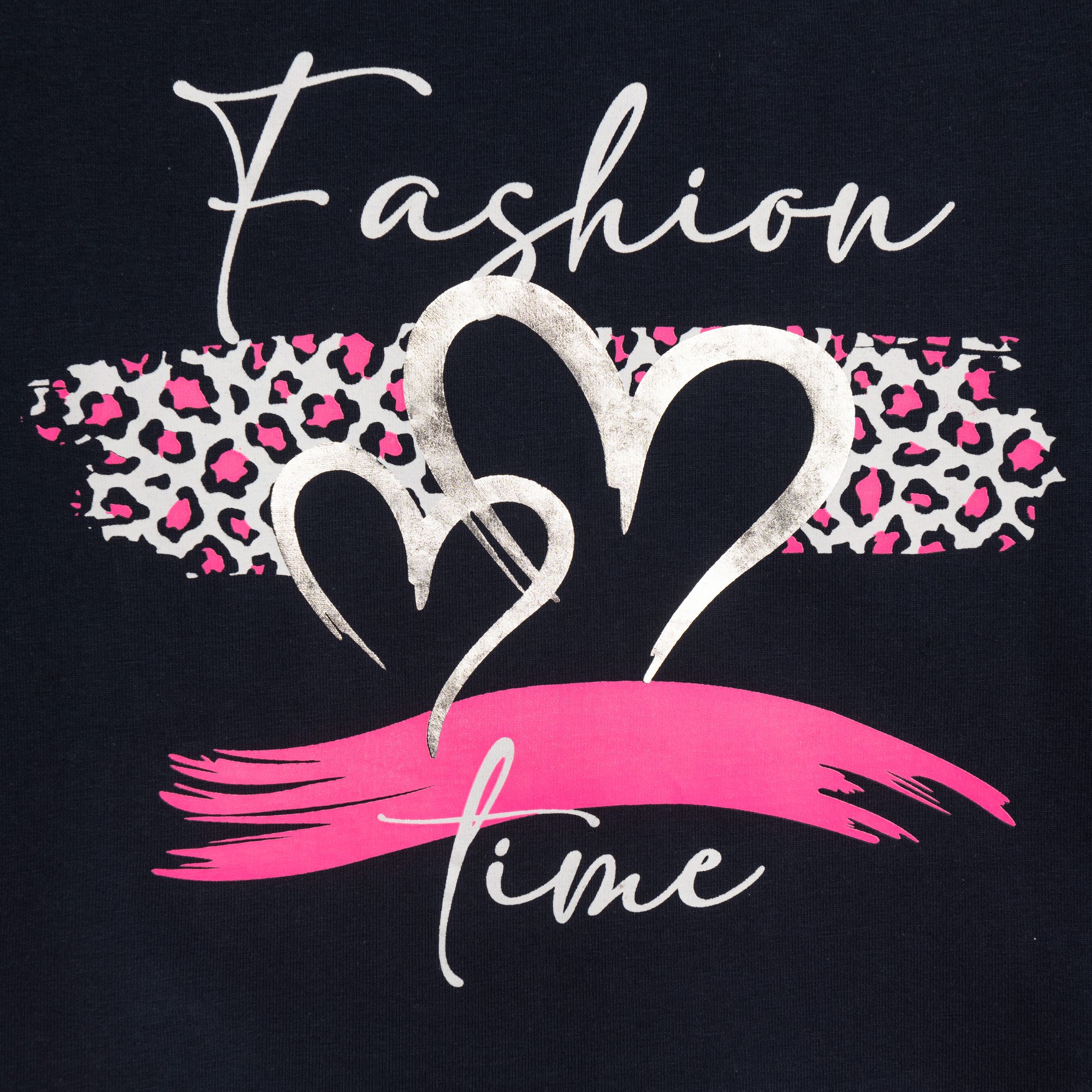 Σετ μπλουζάκι με τύπωμα (καρδιες και λεοπάρ) και σόρτς κάλτσα λύκρα με τύπωμα allover σε χρώμα μπλέ-φωσφορούχο ρόζ/φωσφορούχο ρόζ για κορίτσι 6-16 ετών