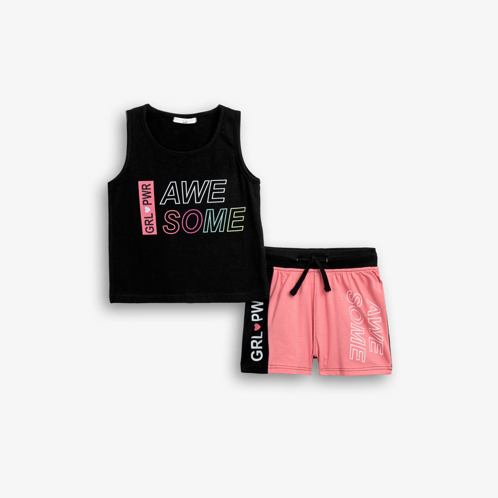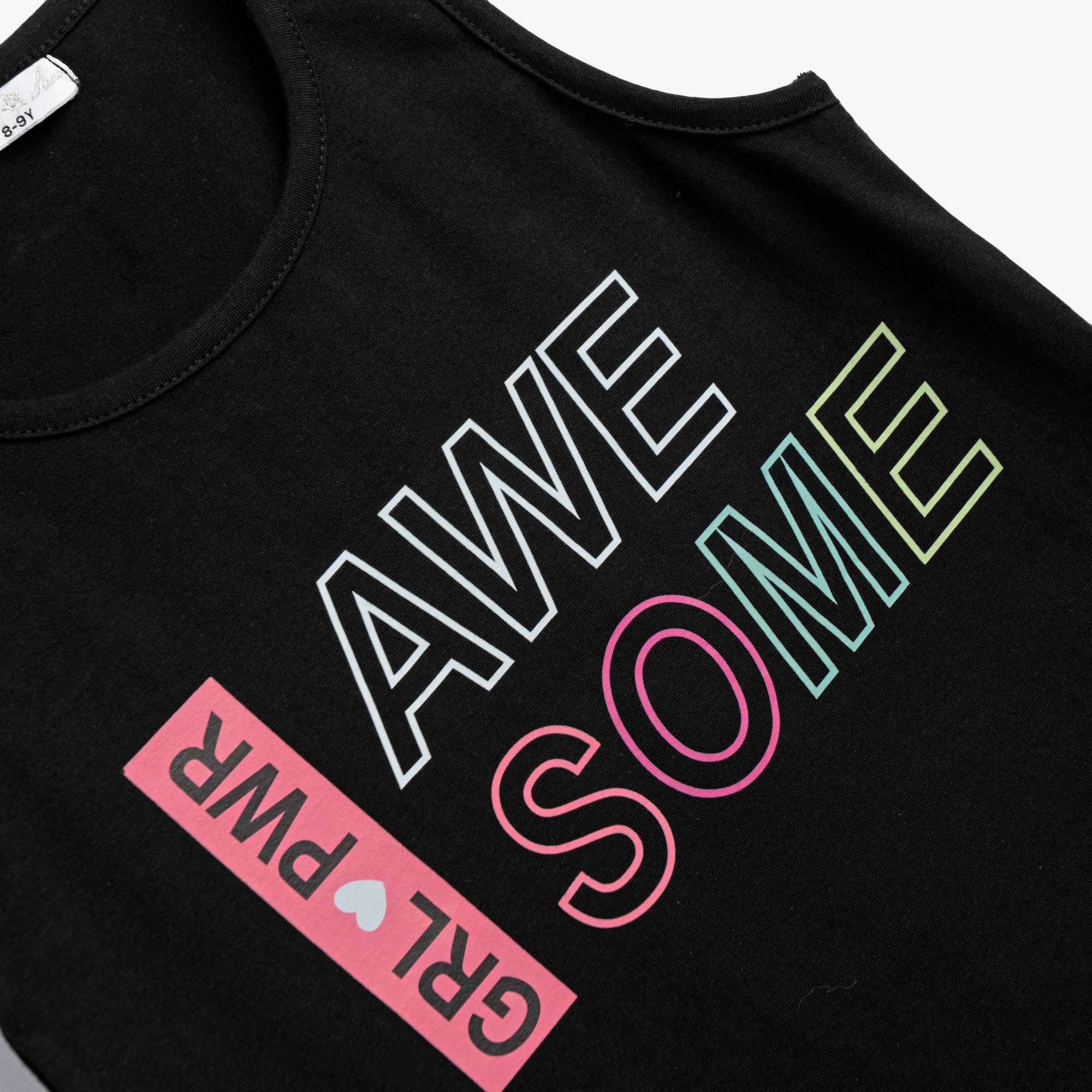 Σετ μπλουζάκι με τύπωμα (awesome) και σόρτς κάλτσα λύκρα με τύπωμα σε χρώμα μαύρο/crayon rouge-μαύρο για κορίτσι 6-16 ετών