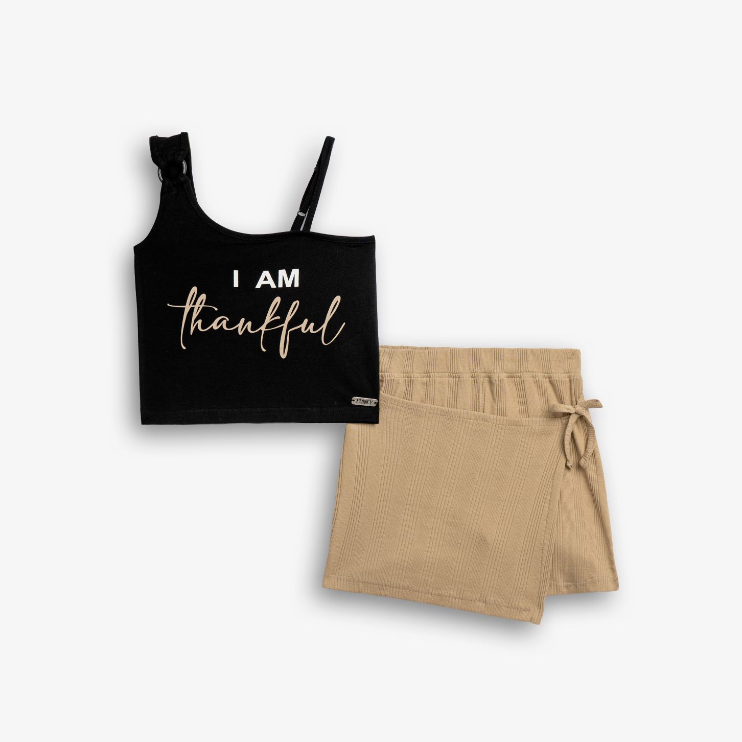 Σετ μπλουζά κάλτσα λύκρα με τύπωμα (I am thankfull) και σόρτς ριπ σε χρώμα μαύρο/μόκα για κορίτσι 6-16 ετών