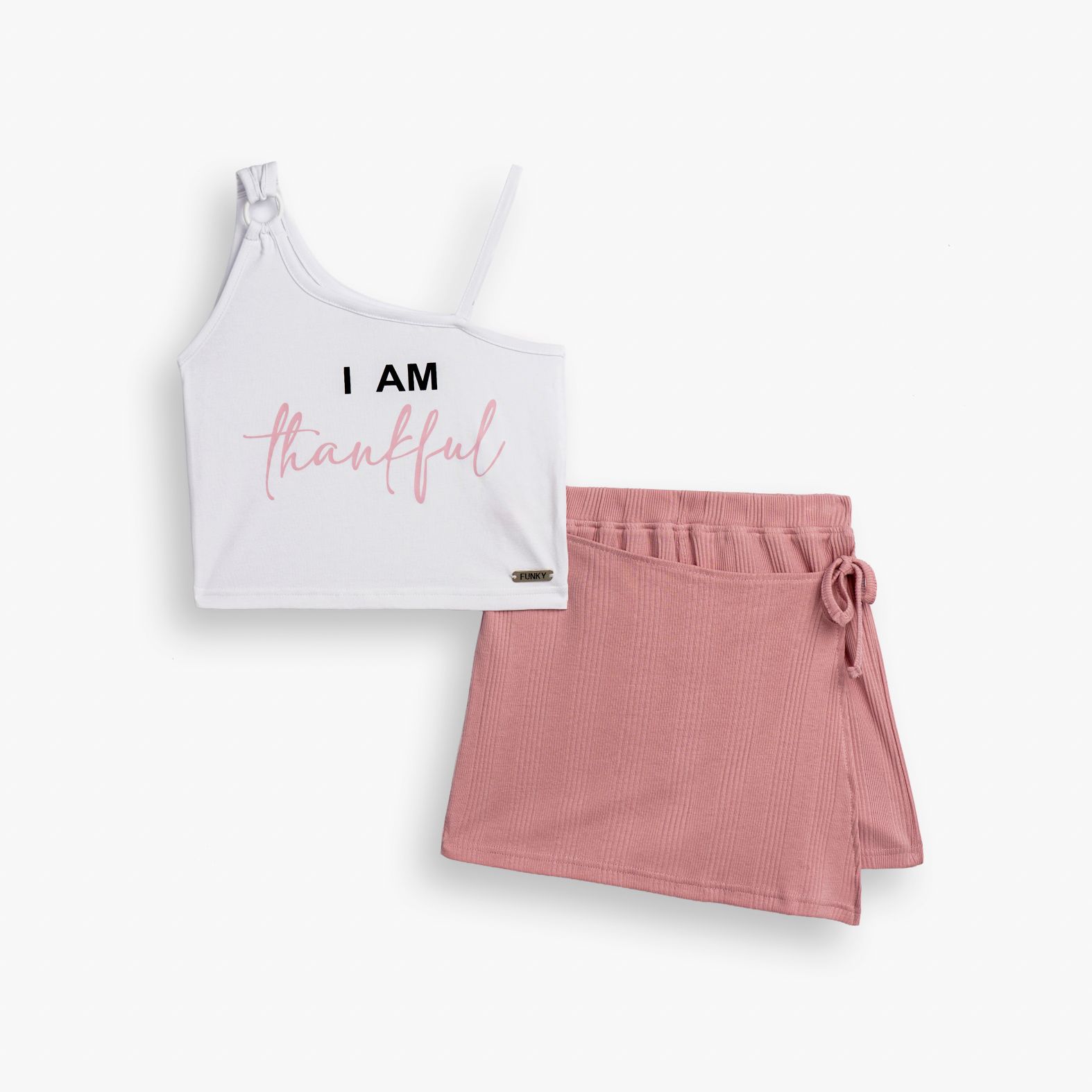 Σετ μπλουζά κάλτσα λύκρα με τύπωμα (I am thankfull) και σόρτς ριπ σε χρώμα λευκό/άγριο τριαντάφυλλο για κορίτσι 6-16 ετών