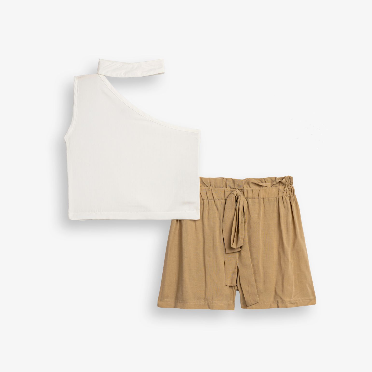 Σετ μπλούζα και σόρτς βισκόζ σε χρώμα λευκό/μόκα για κορίτσι 6-16 ετών