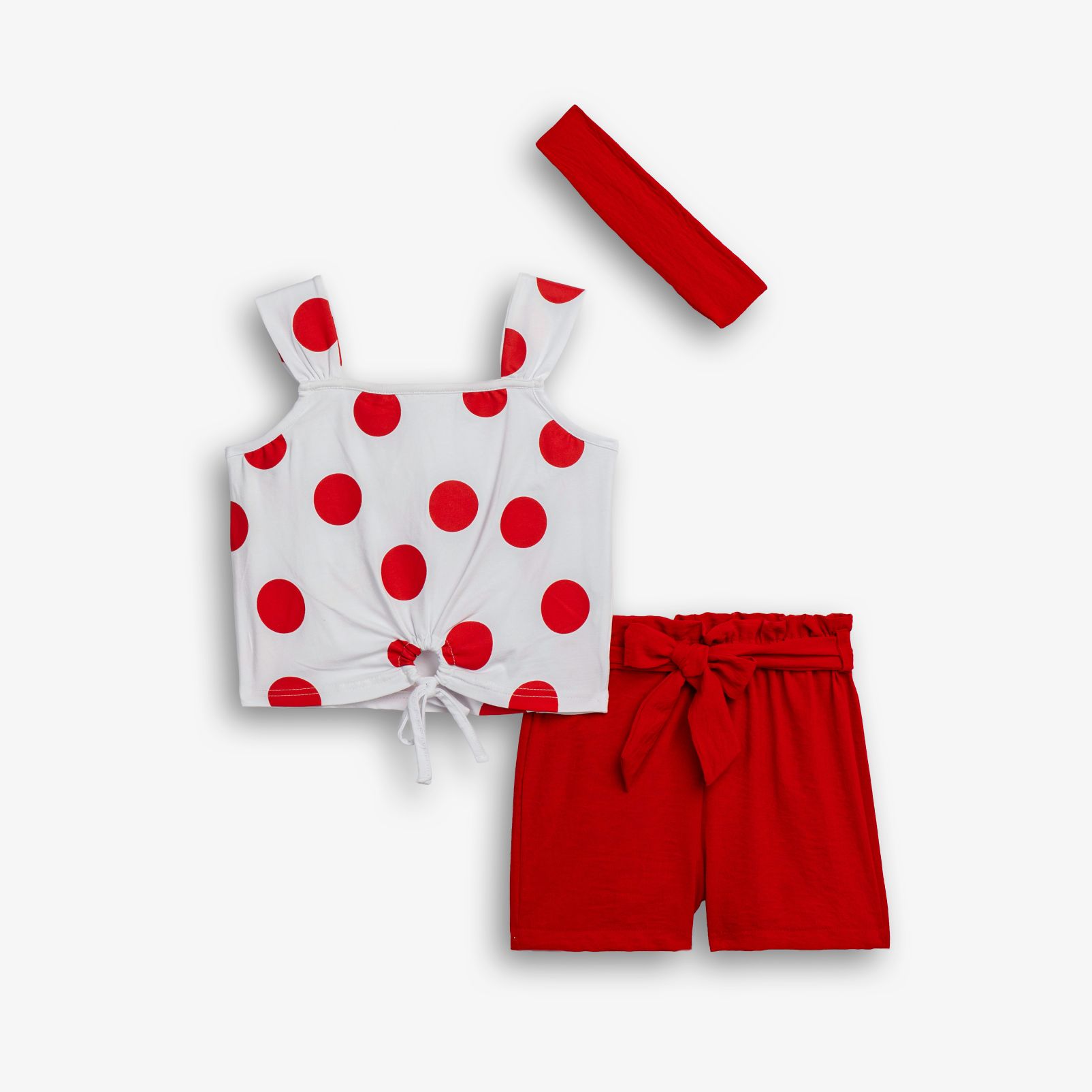 Σετ μπλούζα με τύπωμα (πουά) allover με σόρτς και κορδέλα σε χρώμα λευκό/τύπος για κορίτσι 6-16 ετών