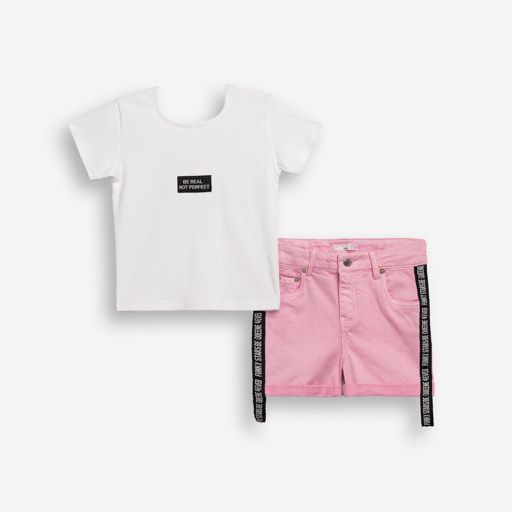 Σετ μπλούζα ριπ και σόρτς τζίν λύκρα σε χρώμα λευκό/λεβάντα ροζ για κορίτσι 6-16 ετών