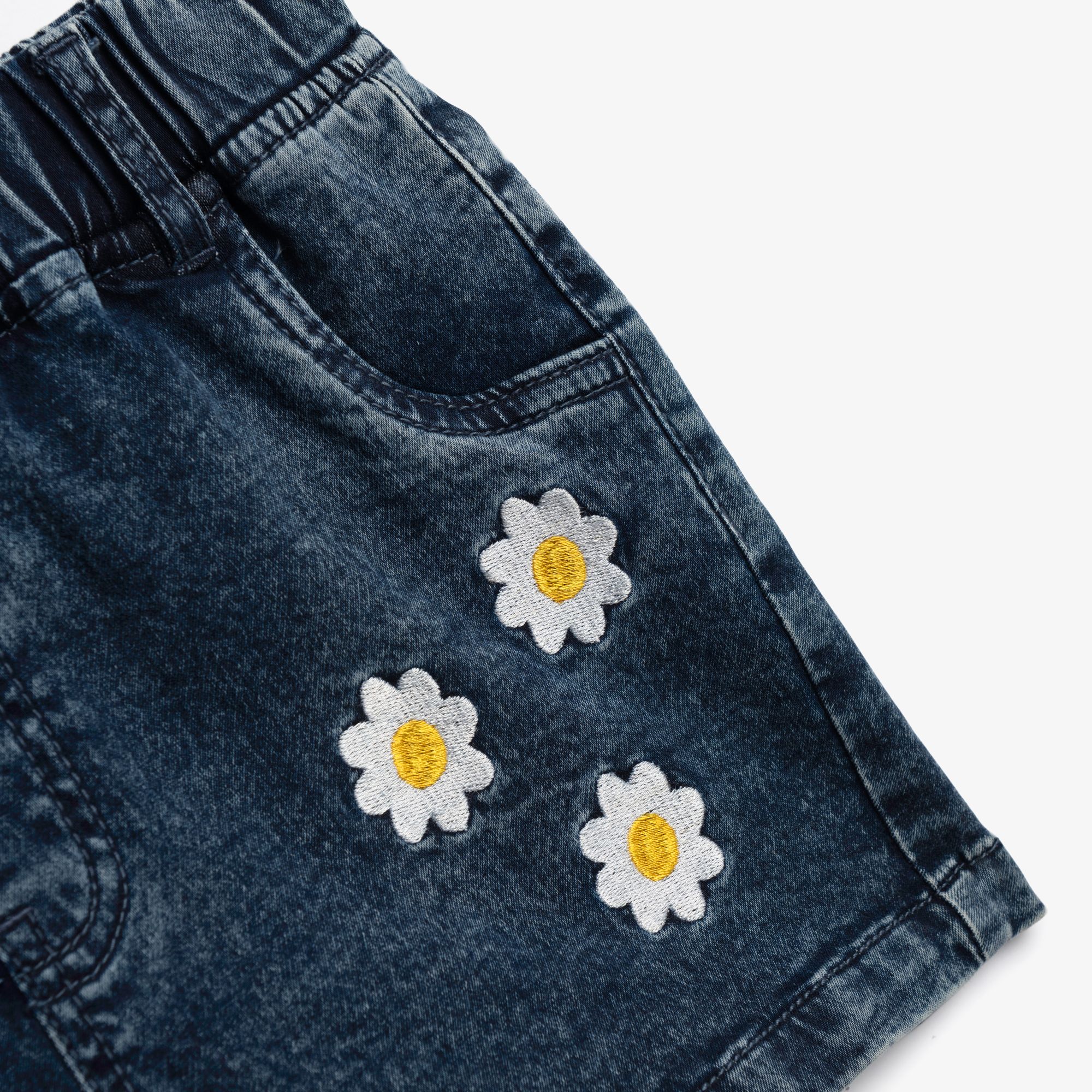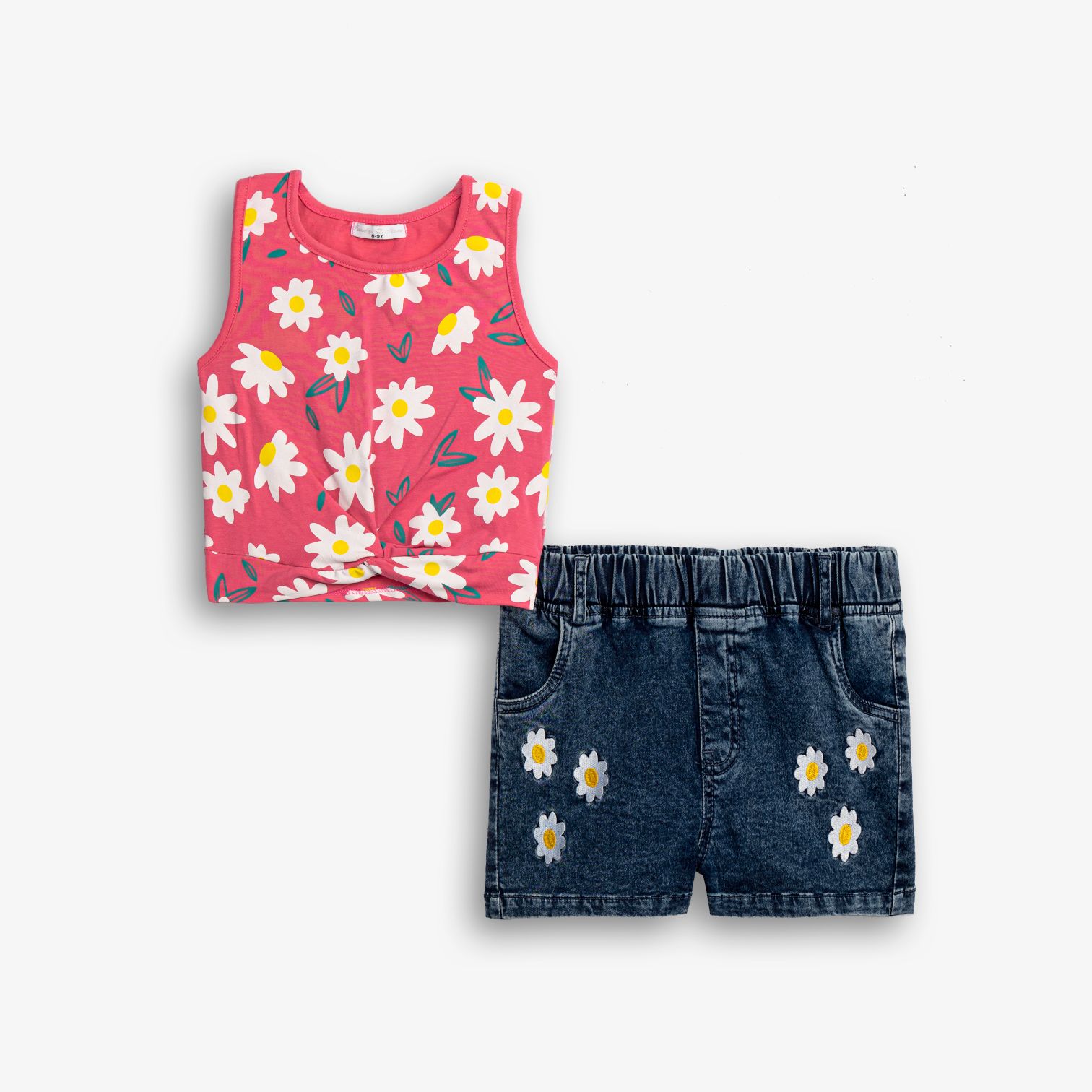 Σετ μπλούζα κάλτσα λύκρα με τύπωμα (λουλούδια) allover και σόρτς τζίν λύκρα σε χρώμα φλαμίνγκο/μπλέ τζίν για κορίτσι 6-16 ετών