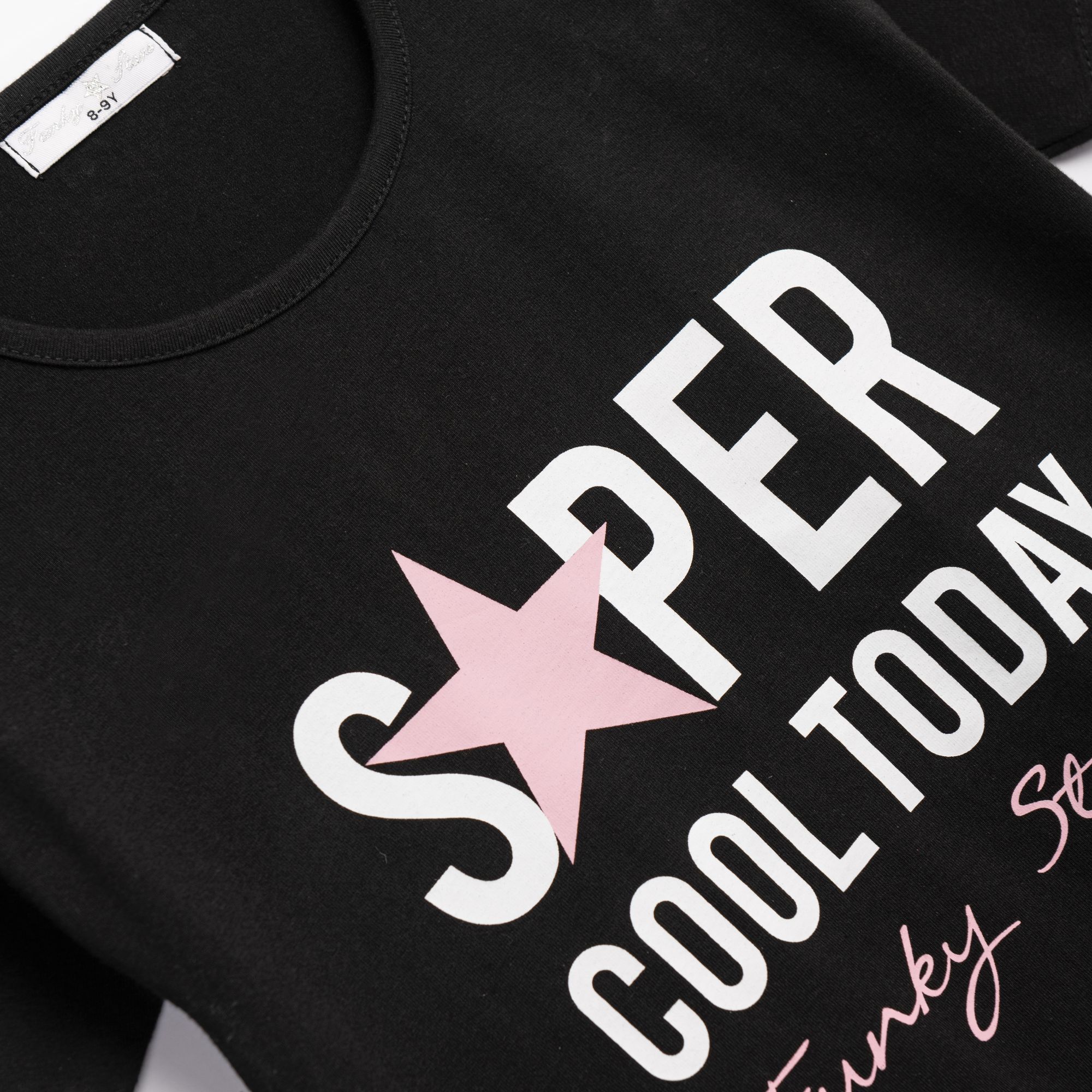 Σετ μπλούζα κάλτσα λύκρα με τύπωμα (super cool today) και κολάν ποδηλατικό με τύπωμα σε χρώμα μαύρο/άγριο τριαντάφυλλο για κορίτσι 6-16 ετών