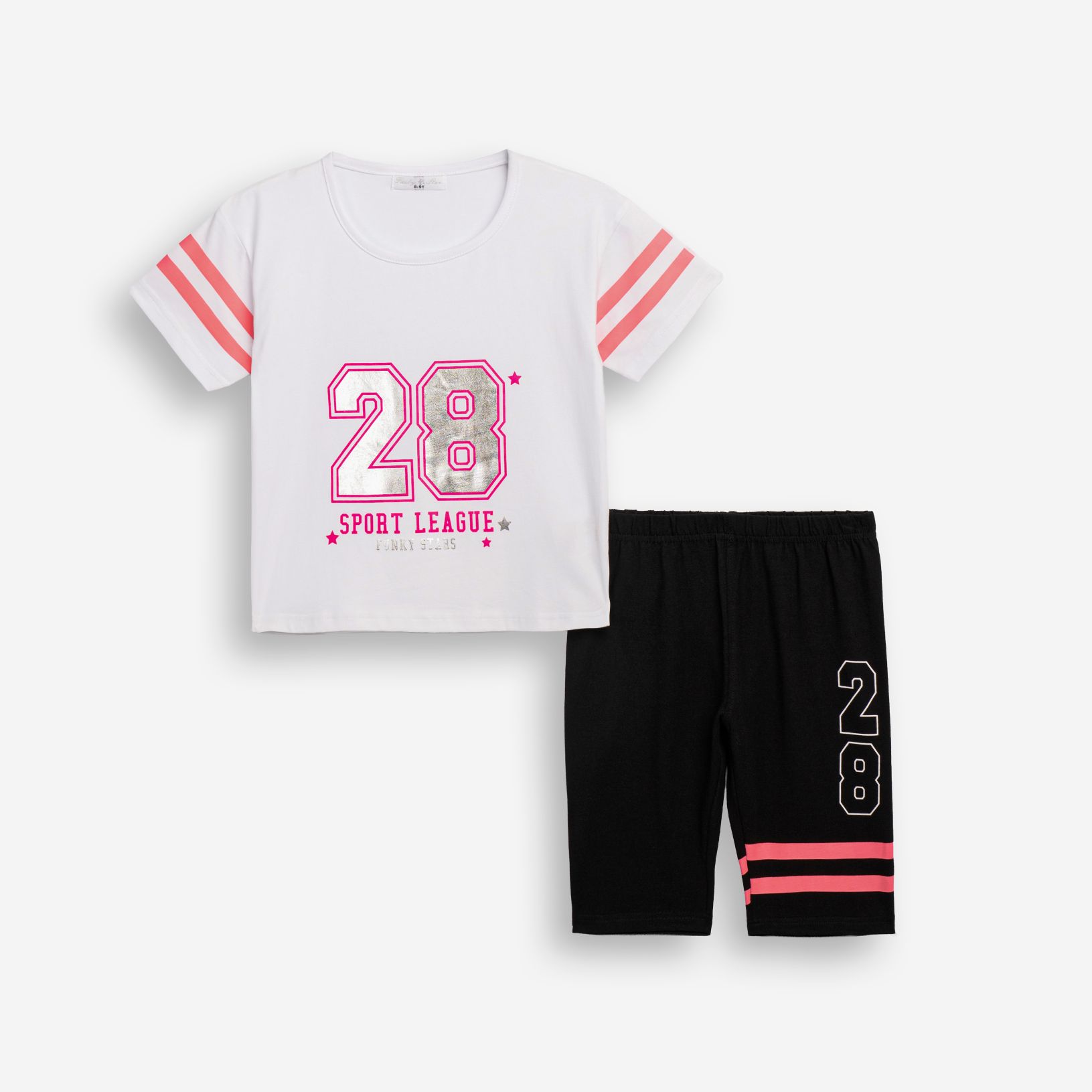Σετ μπλούζα κάλτσα λύκρα με τύπωμα (28) και κολάν ποδηλατικό με τύπωμα σε χρώμα λευκό/μαύρο για κορίτσι 6-16 ετών