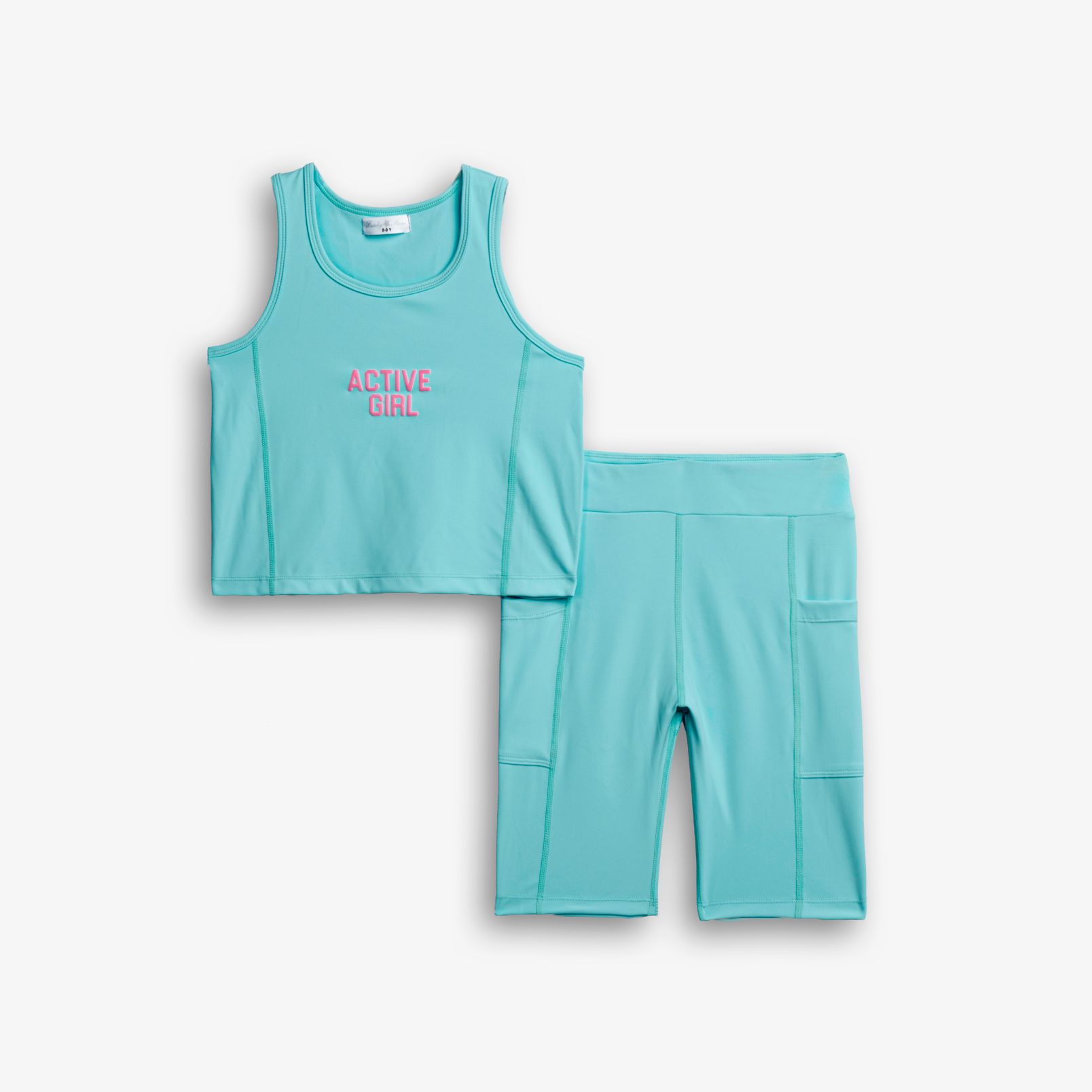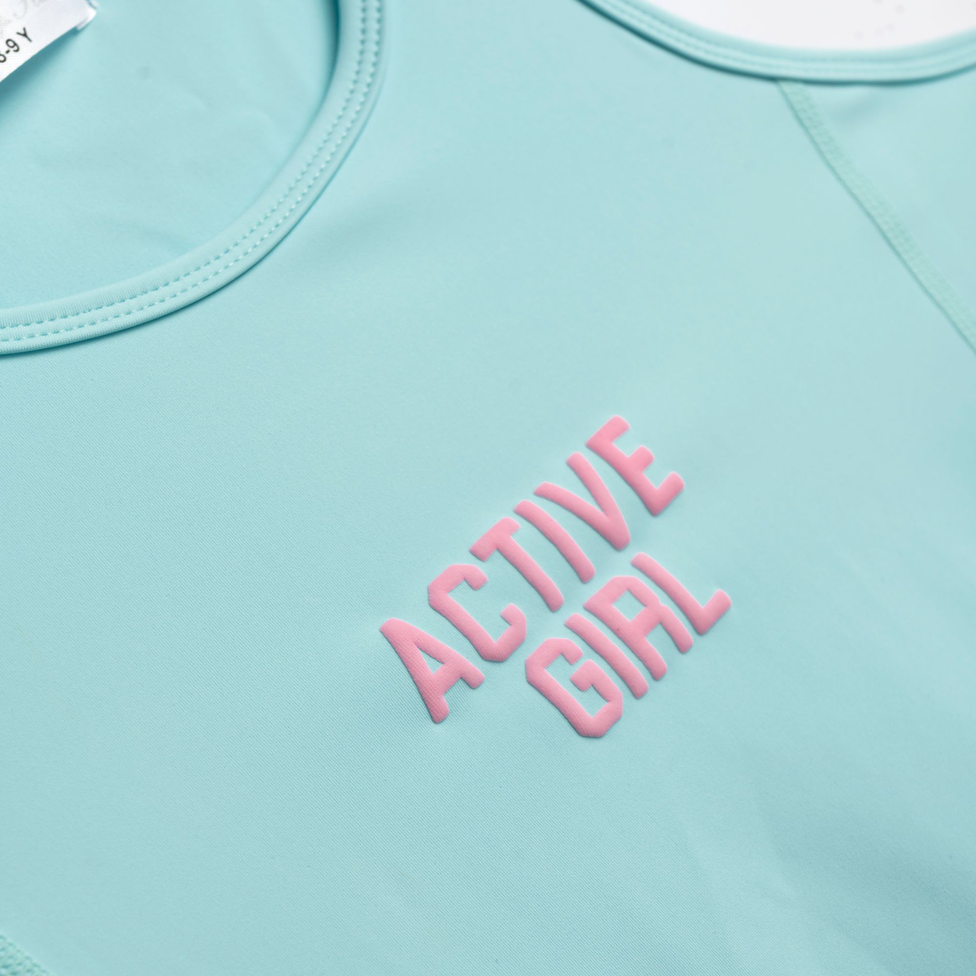 Σετ μπλούζα και κολάν ποδηλατικό με τύπωμα (active girl) σε χρώμα φωσφορούχο βεραμάν/φωσφορούχο βεραμάν για κορίτσι 6-16 ετών