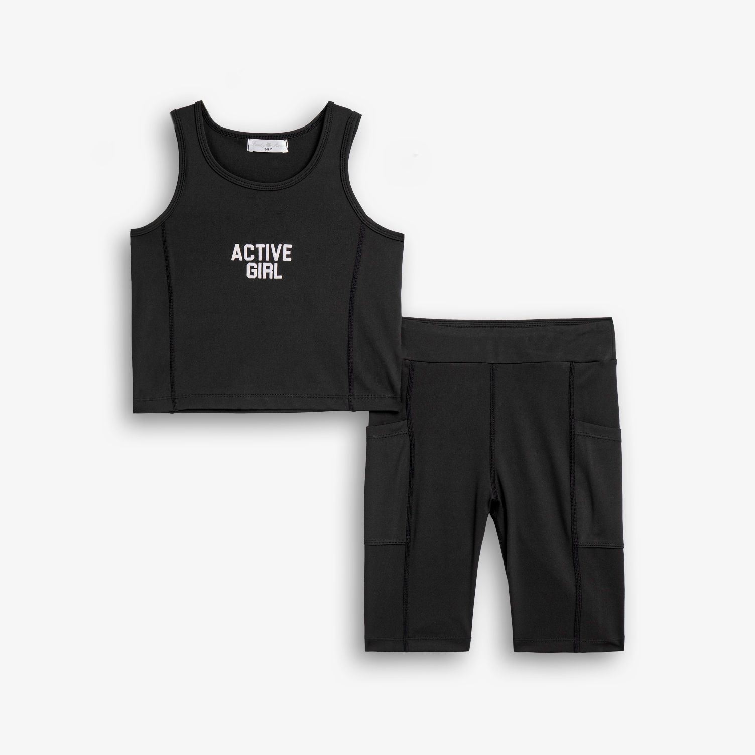 Σετ μπλούζα και κολάν ποδηλατικό με τύπωμα (active girl)σε χρώμα μαύρο/μαύρο για κορίτσι 6-16 ετών