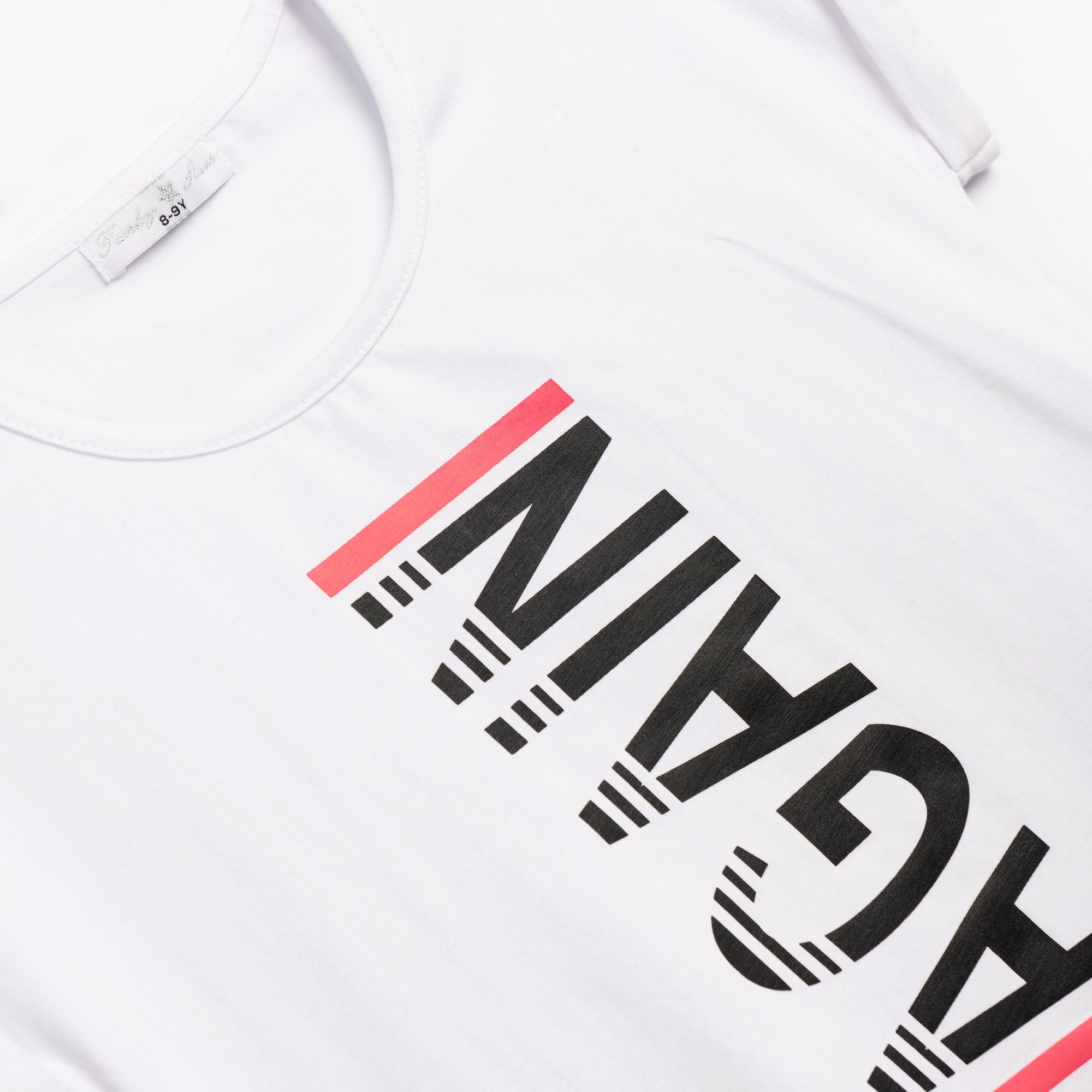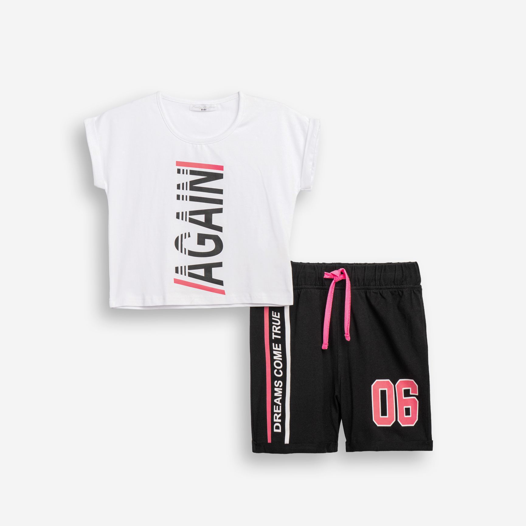 Σετ μπλούζα κάλτσα λύκρα με τύπωμα (again) και βερμούδα με τύπωμα σε χρώμα λευκό/μαύρο για κορίτσι 6-16 ετών