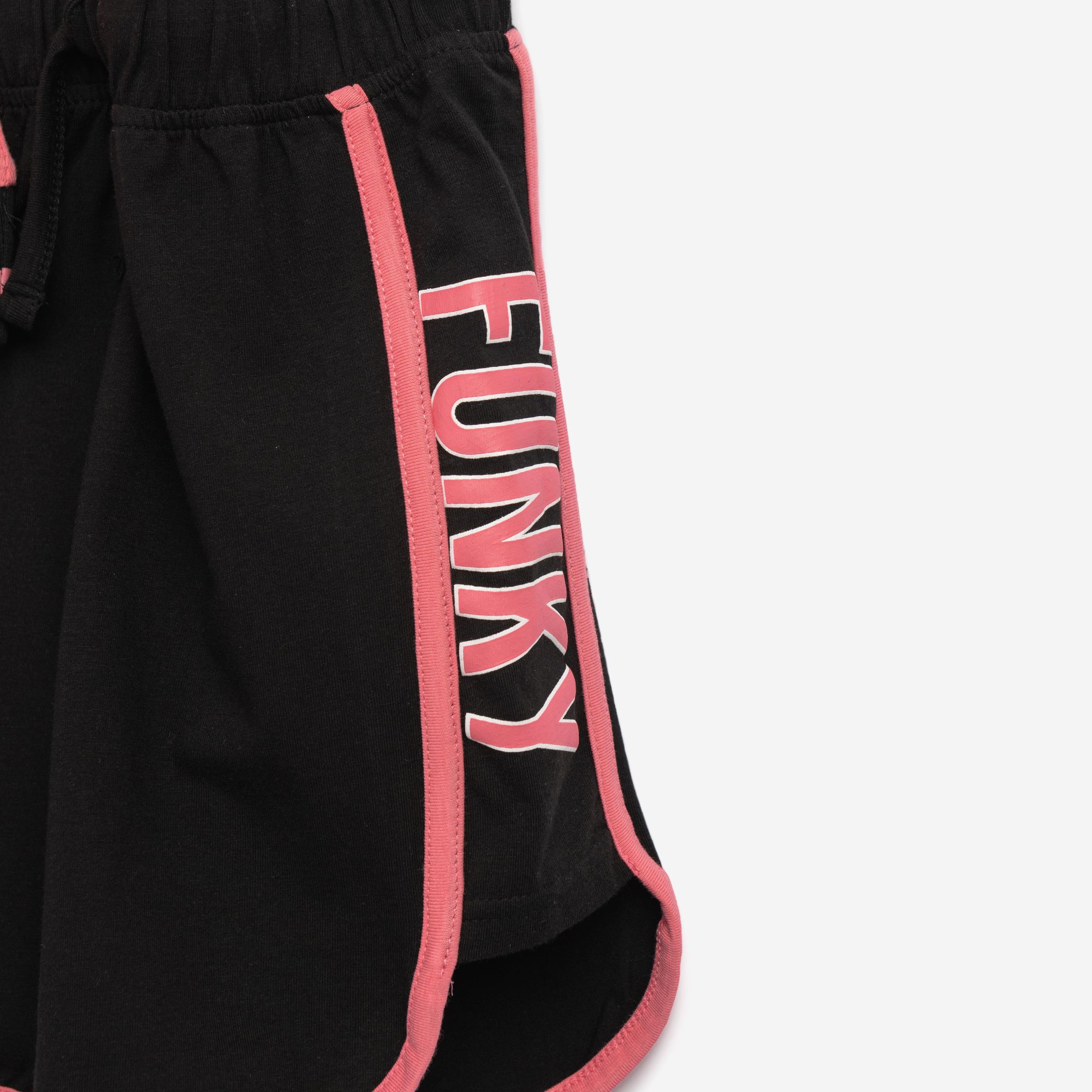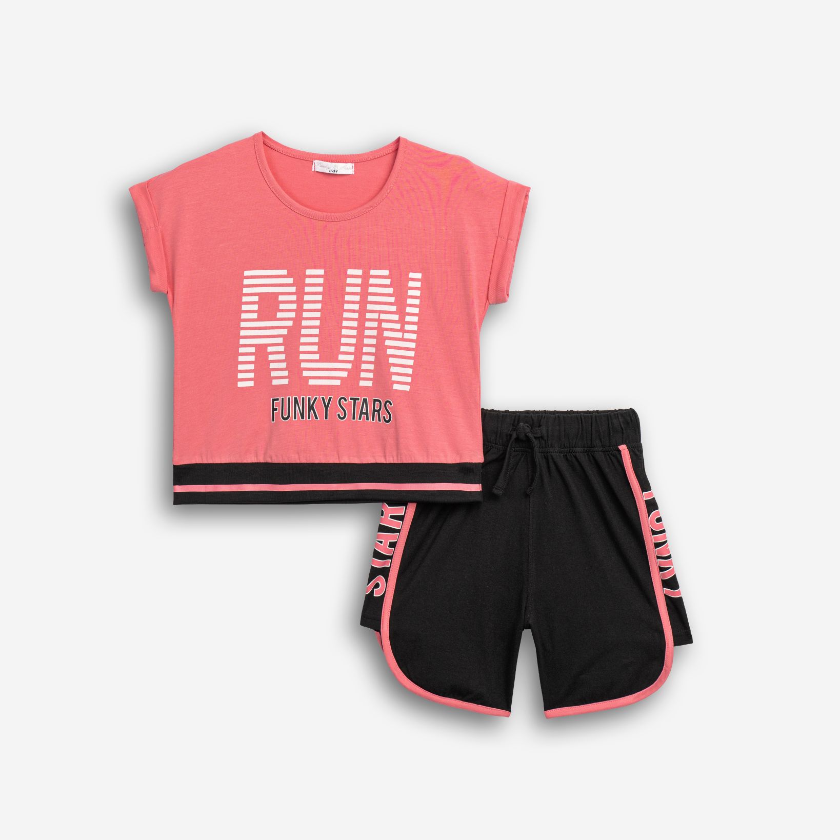 Σετ μπλούζα κάλτσα λύκρα με τύπωμα (run) και βερμούδα με τύπωμα σε χρώμα crayon rouge/μαύρο για κορίτσι 6-16 ετών