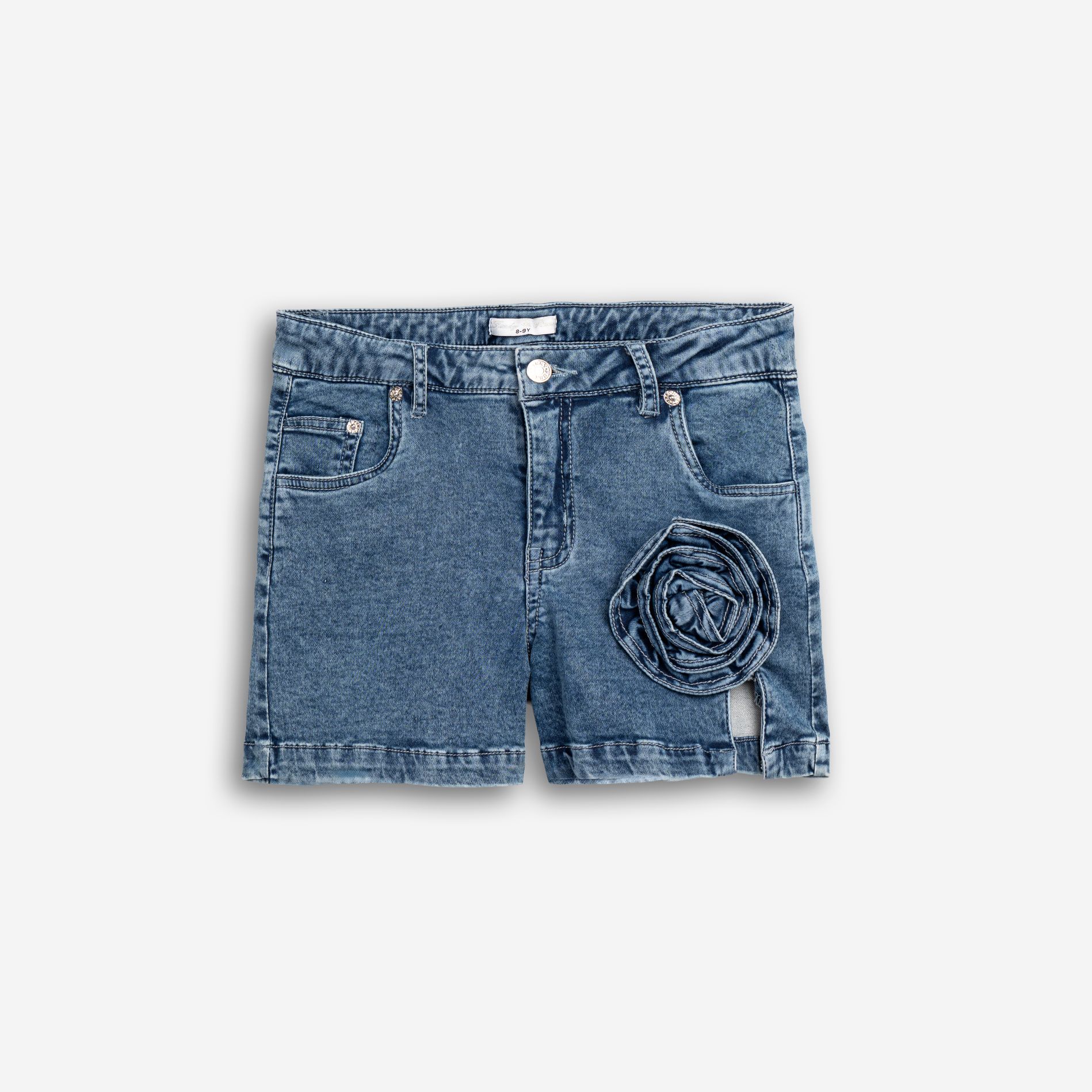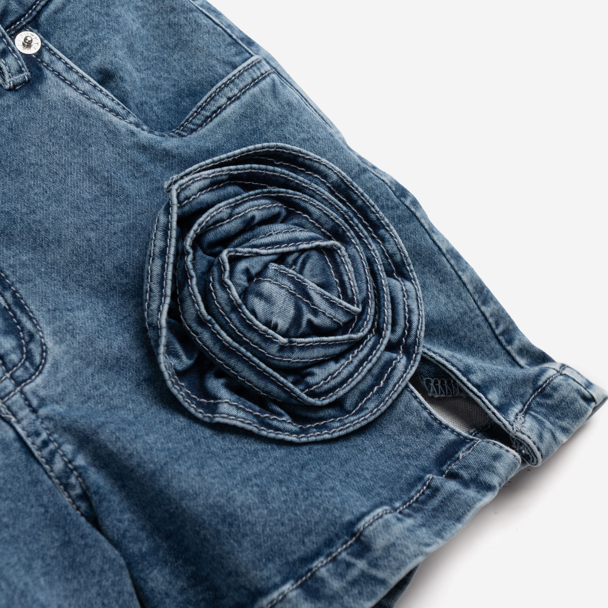 Σόρτς τζίν λύκρα με σχέδιο (τριαντάφυλο) σε χρώμα τύπος για κορίτσι 6-16 ετών