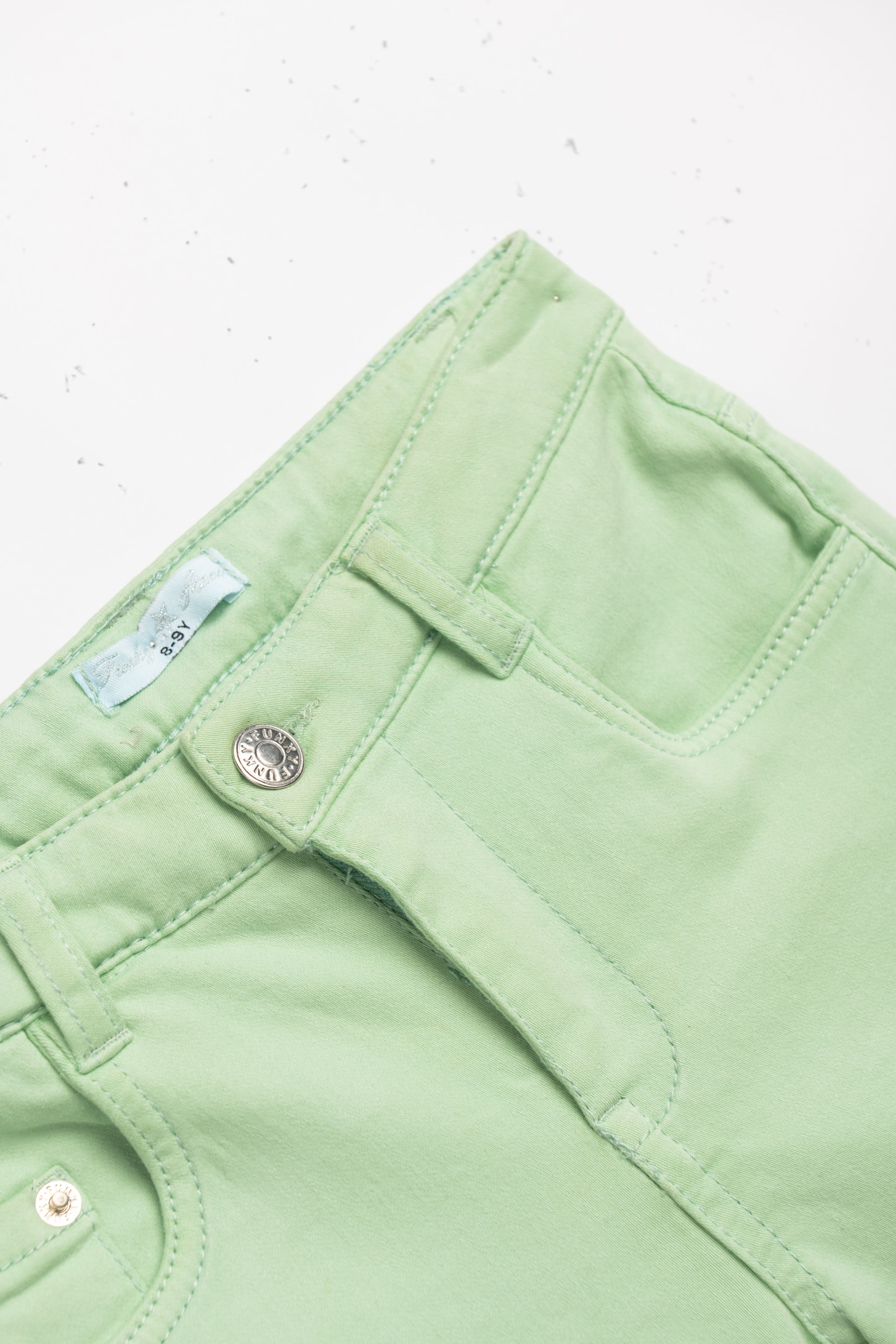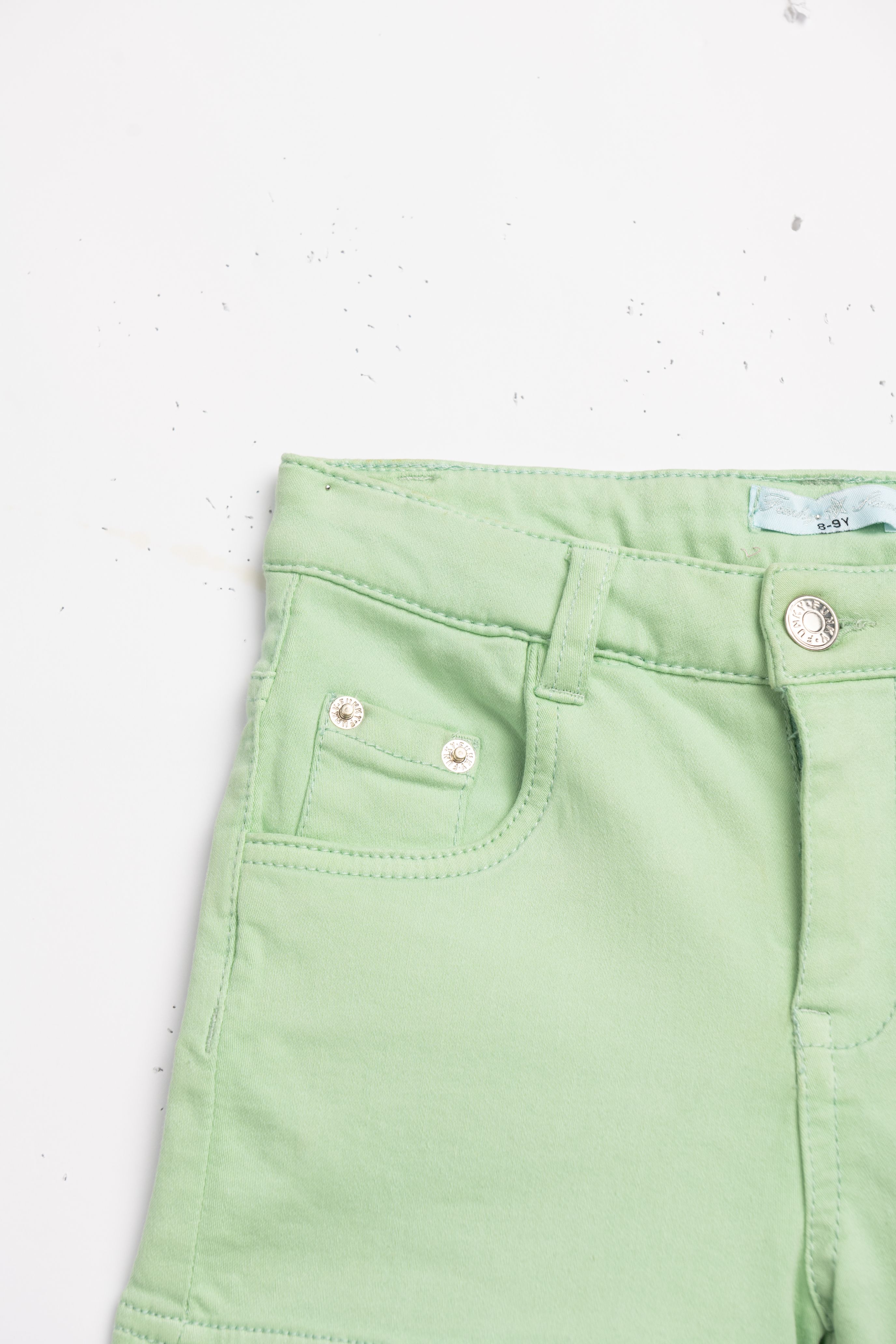 Σόρτς τζίν λύκρα σε χρώμα φυστικί για κορίτσι 6-16 ετών