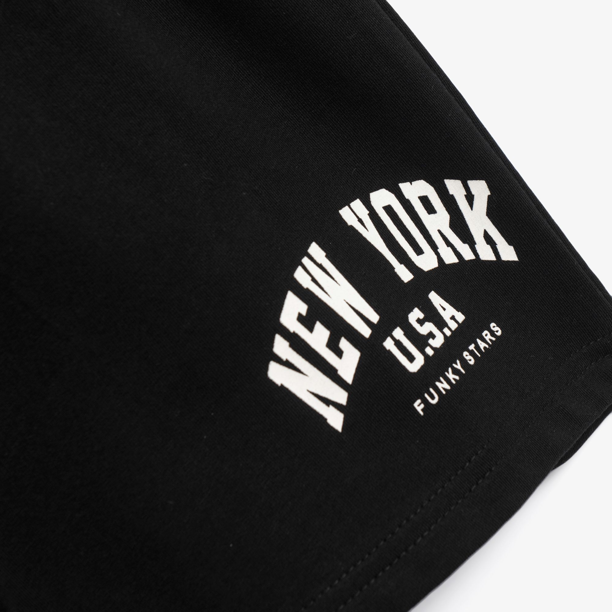 Σετ 3 τεμάχια ζακέτα κοντομάνικη με τύπωμα (new york) και τοπ και σόρτς φούτερ με τύπωμα σε χρώμα μαύρο/λευκό/μαύρο για κορίτσι 6-16 ετών