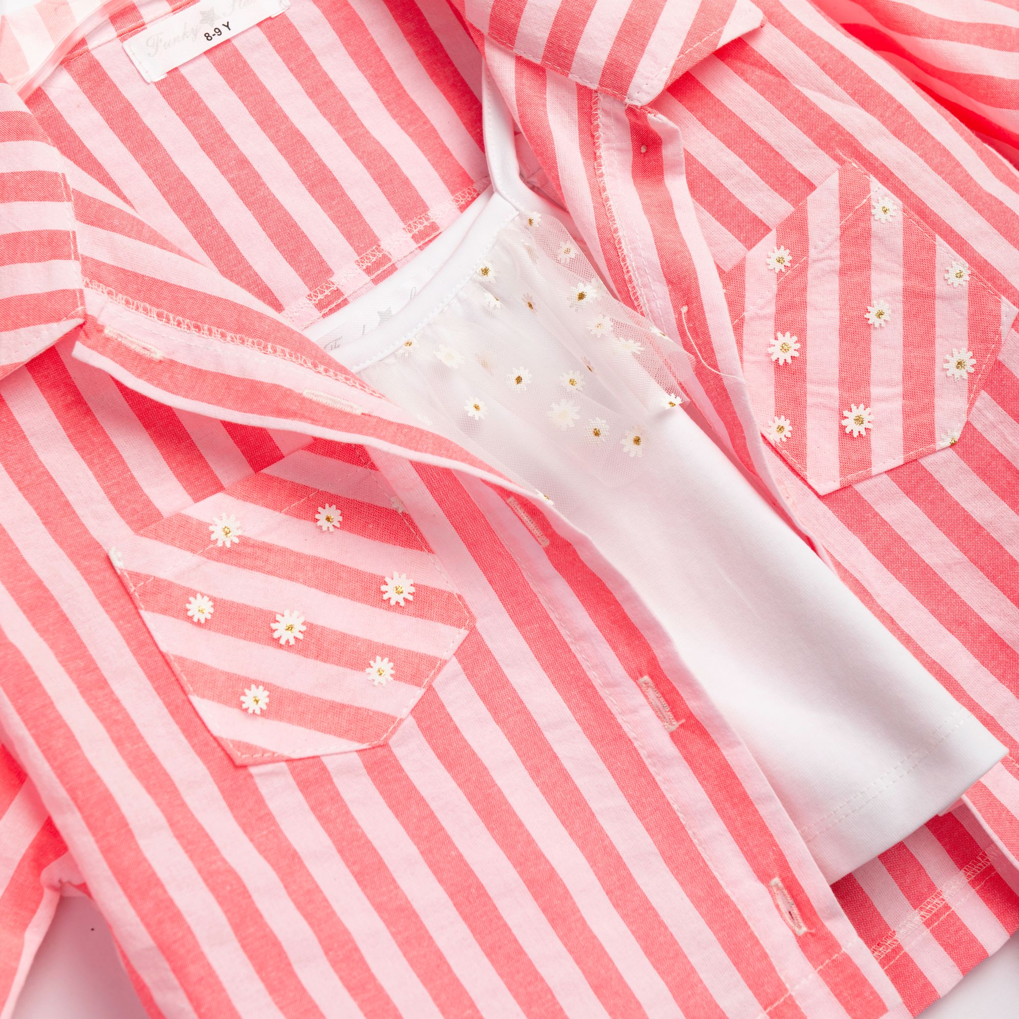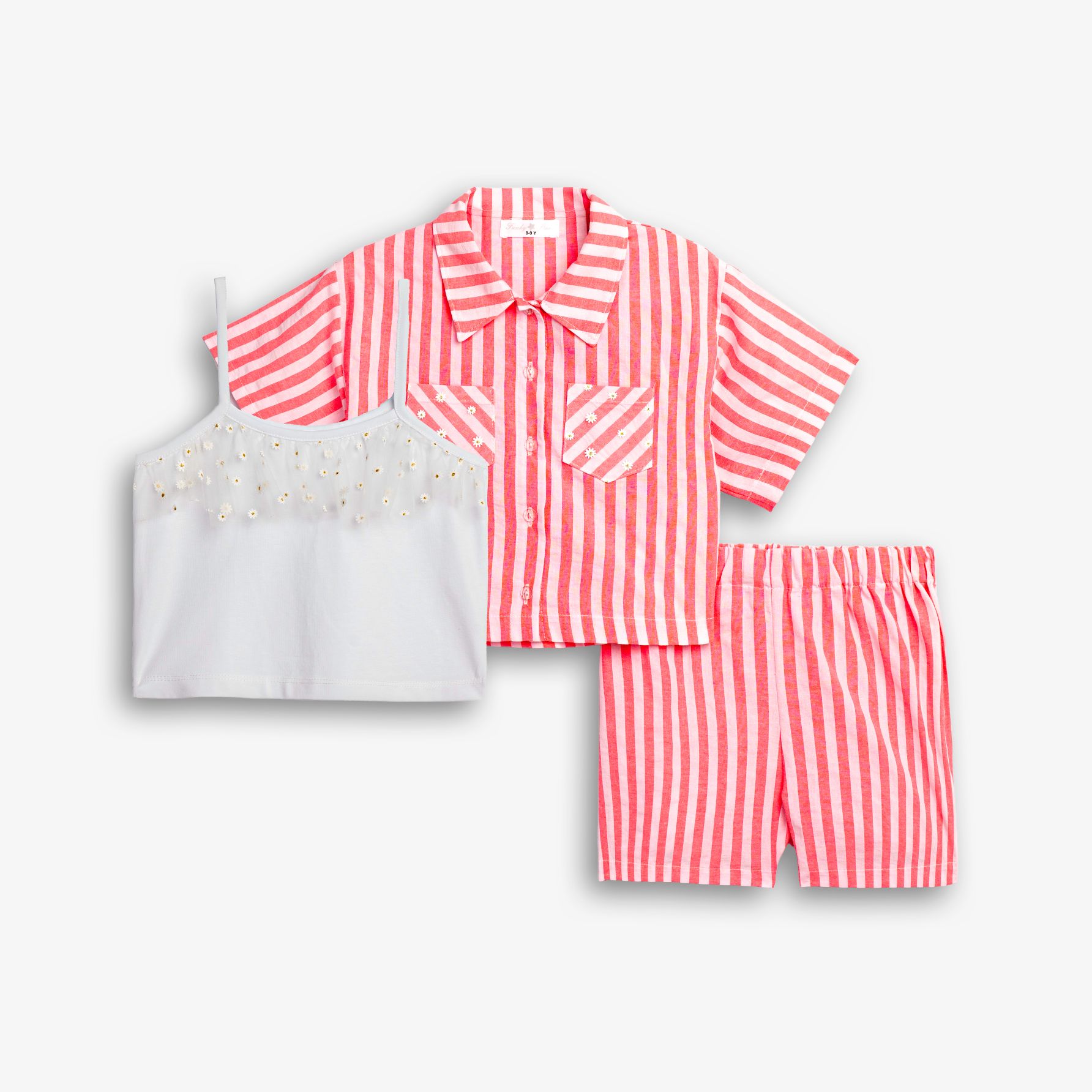 Σετ 3 τεμάχια πουκάμισο κοντομάνικο ριγέ και τοπ και σόρτς ριγέ σε χρώμα τύπος για κορίτσι 6-16 ετών