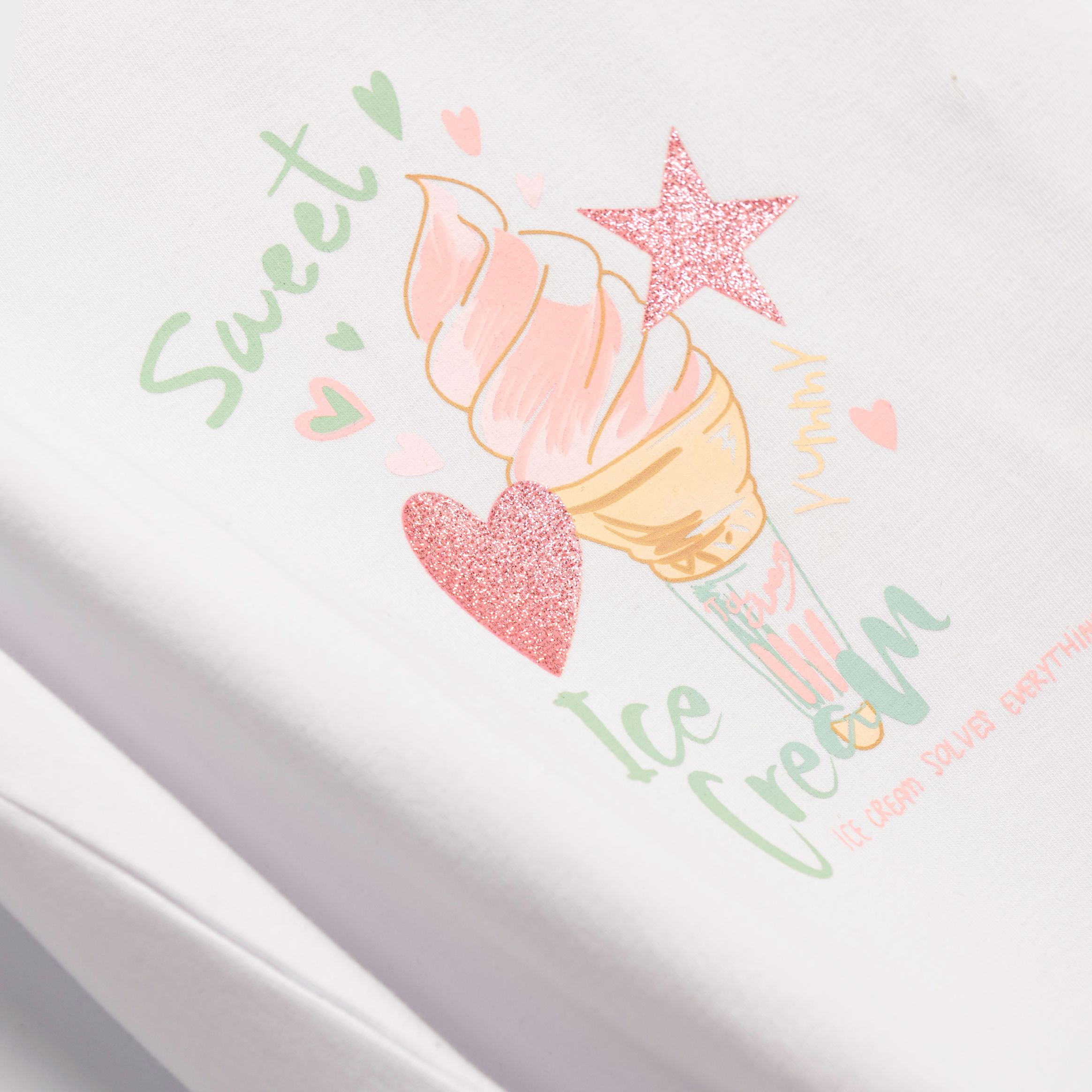 Μπλούζα κάλτσα λύκρα με τύπωμα (παγωτό) σε χρώμα λευκό για κορίτσι 1-6 ετών