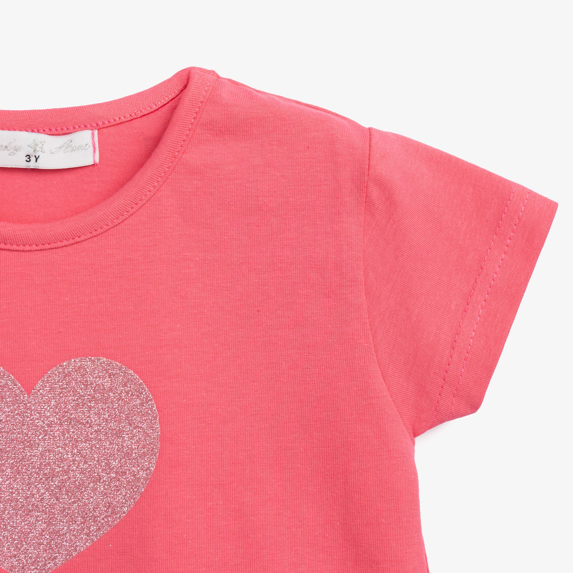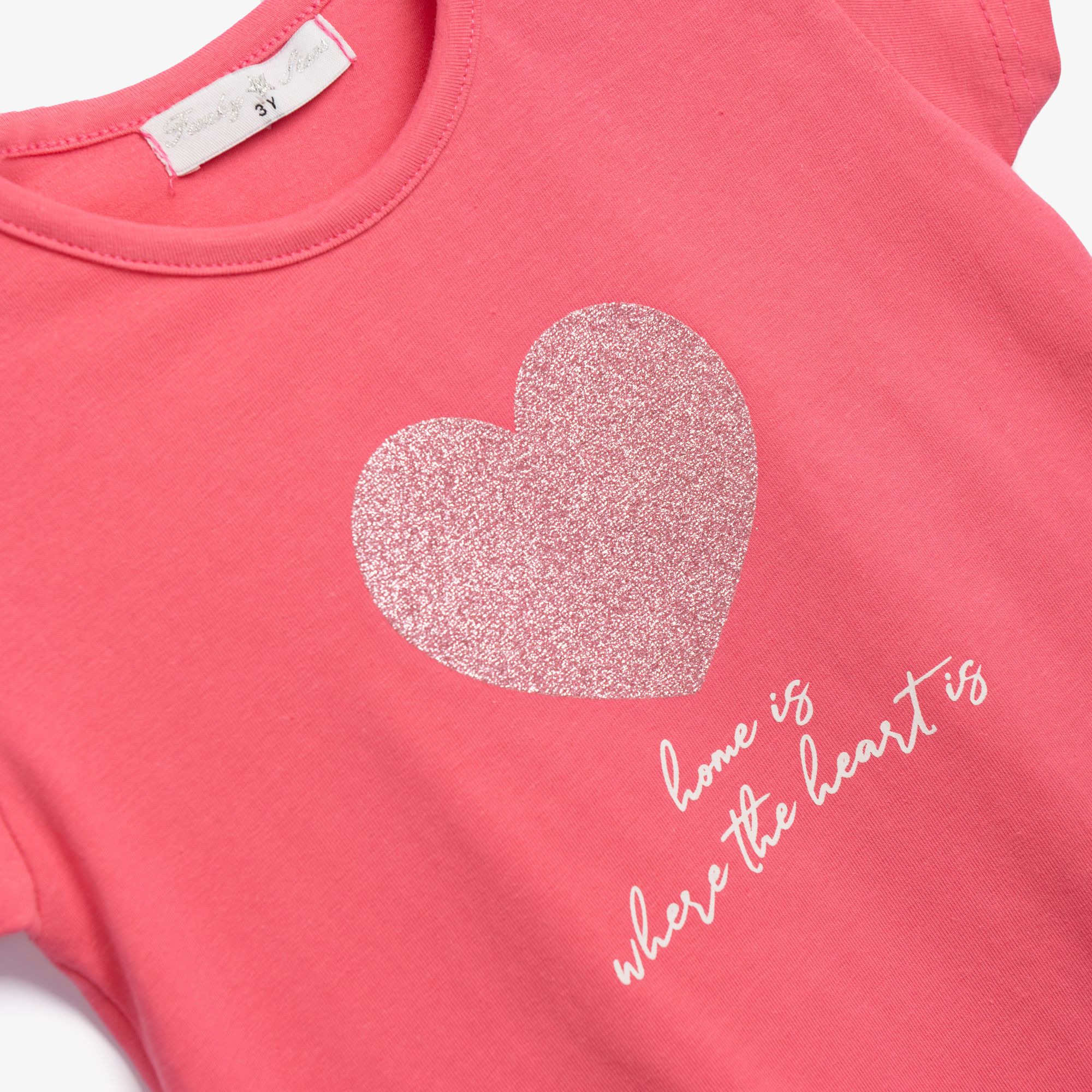 Μπλούζα κοντομάνικη κάλτσα λύκρα με πούλιες σε χρώμα ροζ φλαμίνγκο για κορίτσι 1-6 ετών