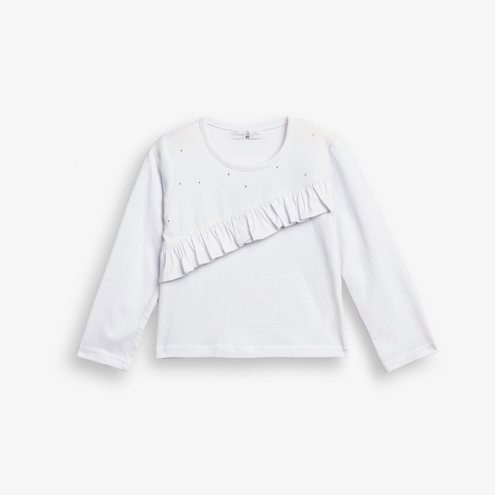 Μπλούζα μακρυμάνικη κάλτσα λύκρα με στράς σε χρώμα λευκό για κορίτσι 1-6 ετών