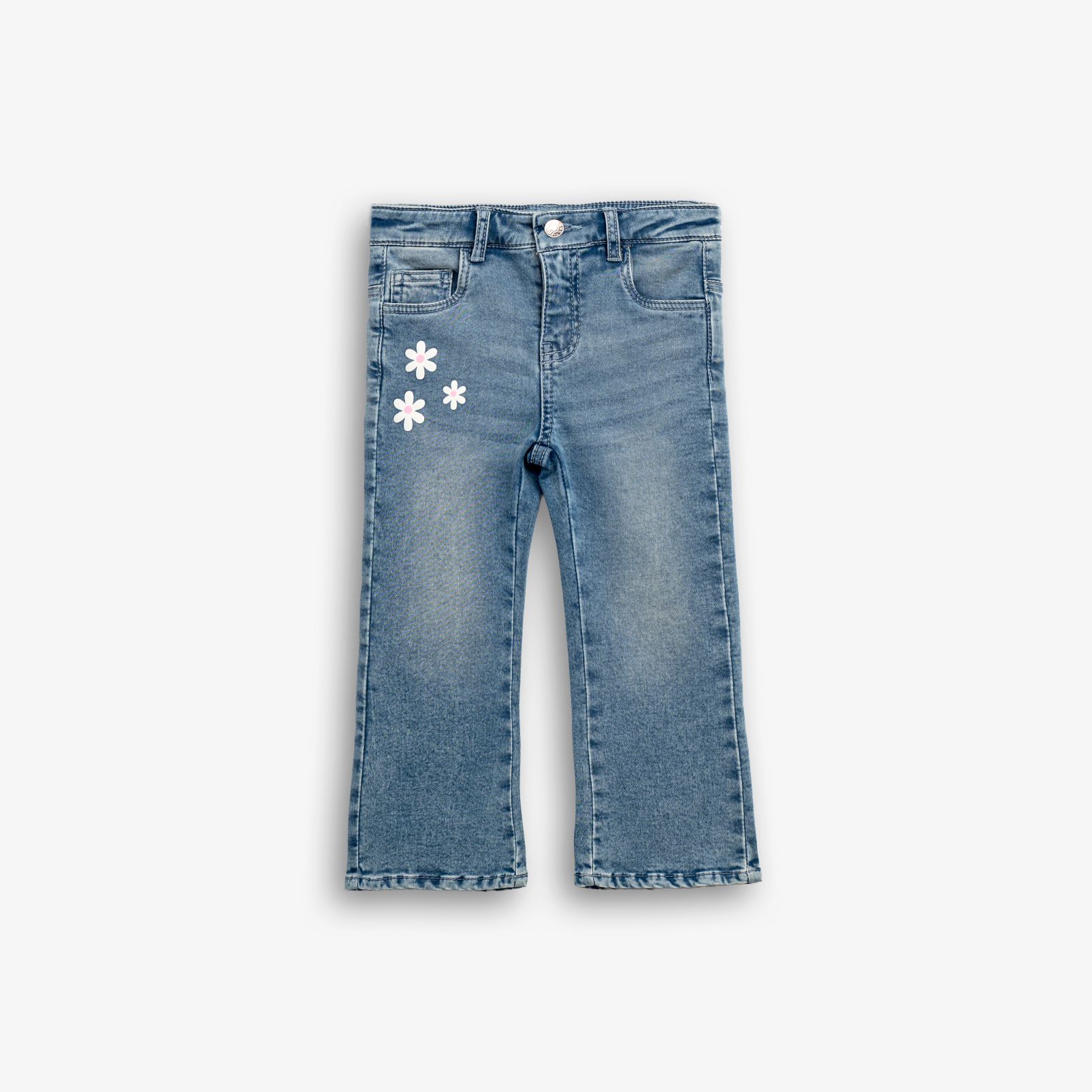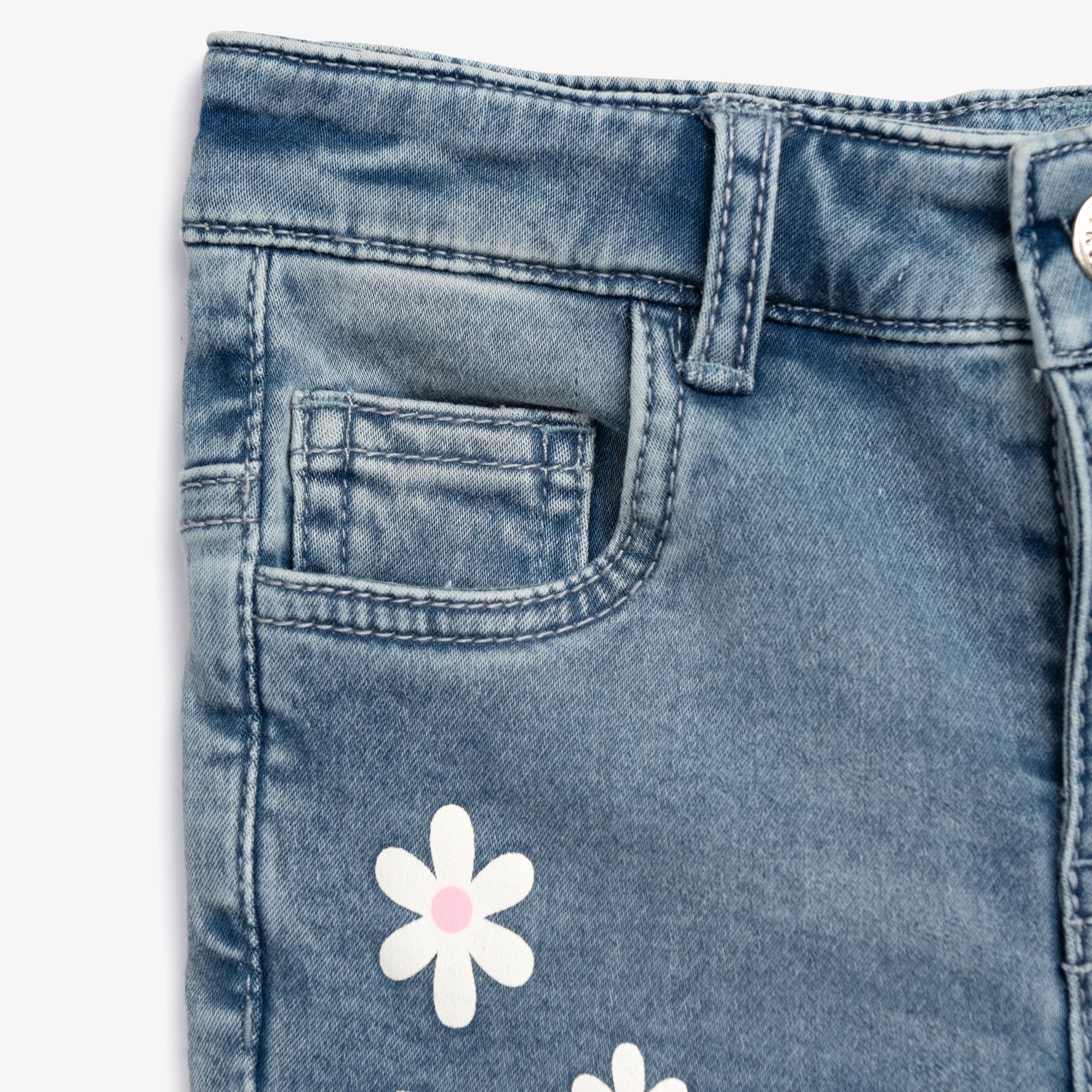 Παντελόνι τζίν λύκρα με τύπωμα (λουλούδια) σε χρώμα τύπος για κορίτσι 1-6 ετών