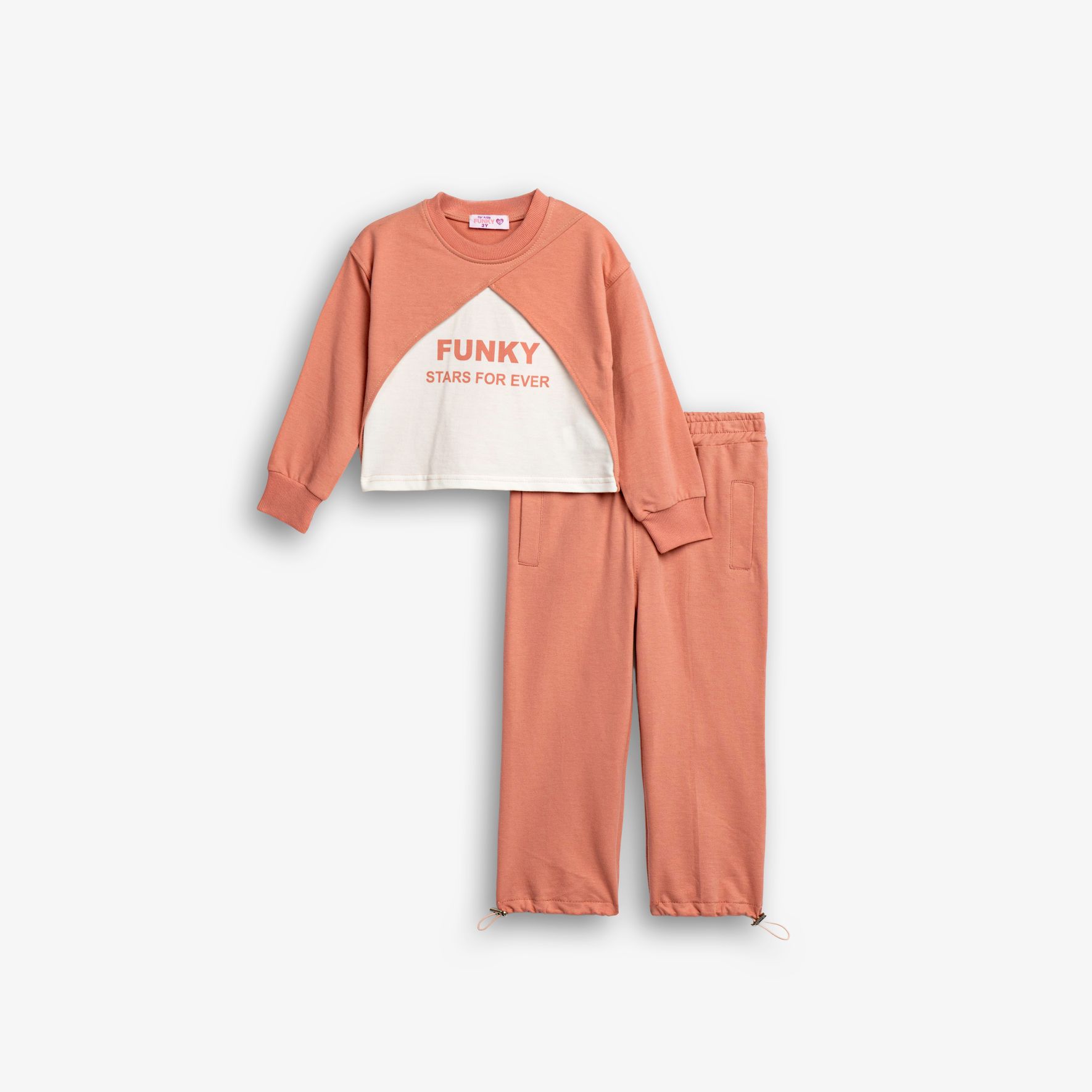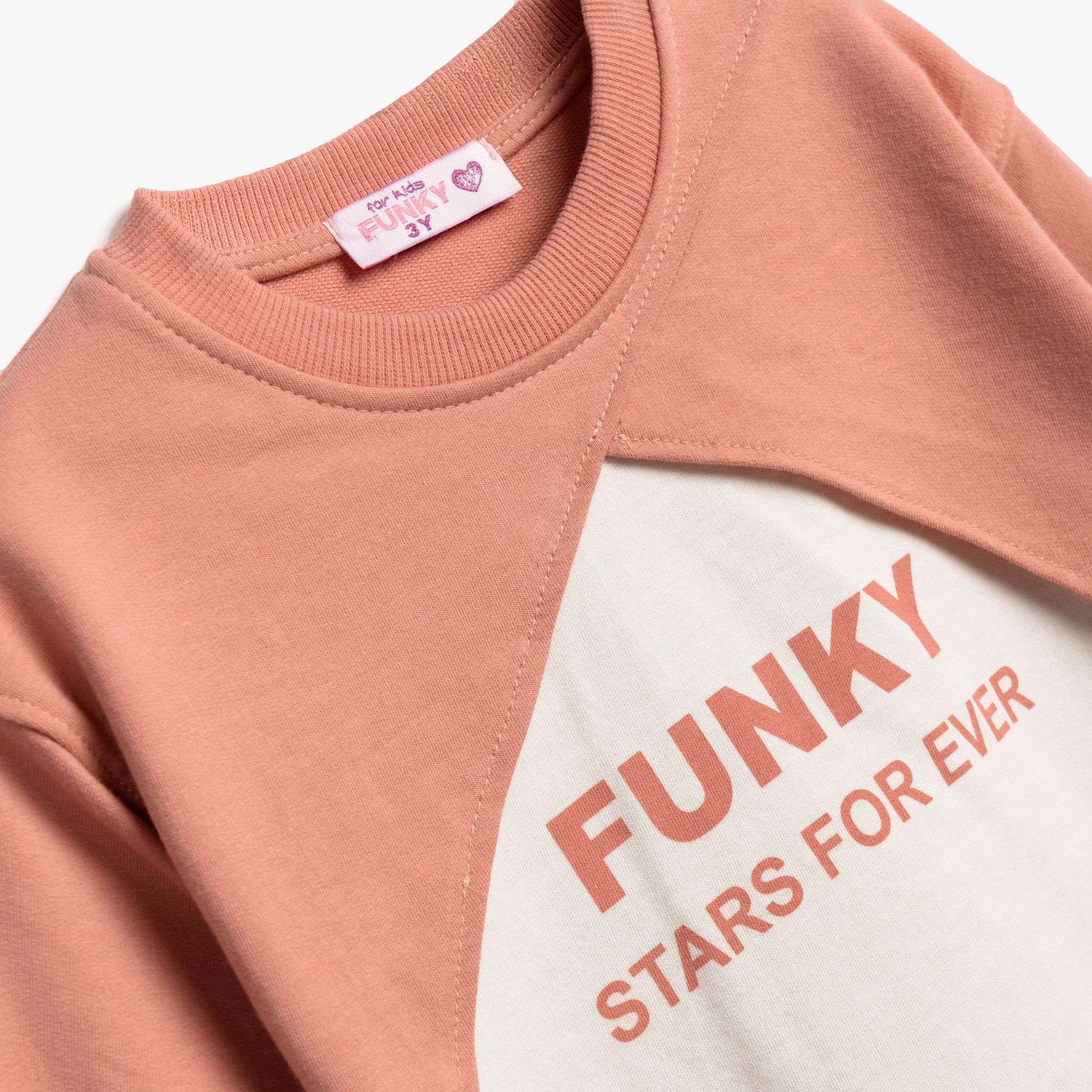Φόρμα φούτερ με τύπωμα (funky stars forever) και παντελόνι φόρμας σε χρώμα άγριο τριαντάφυλλο-εκρού/άγριο τριαντάφυλλο για κορίτσι 1-6 ετών