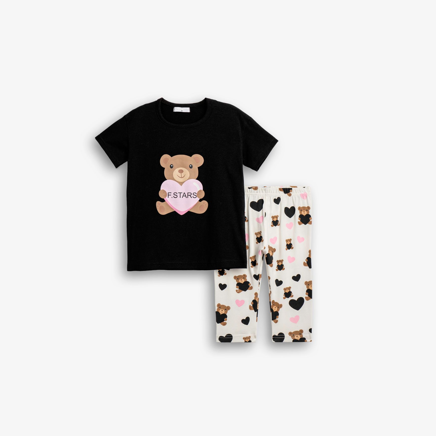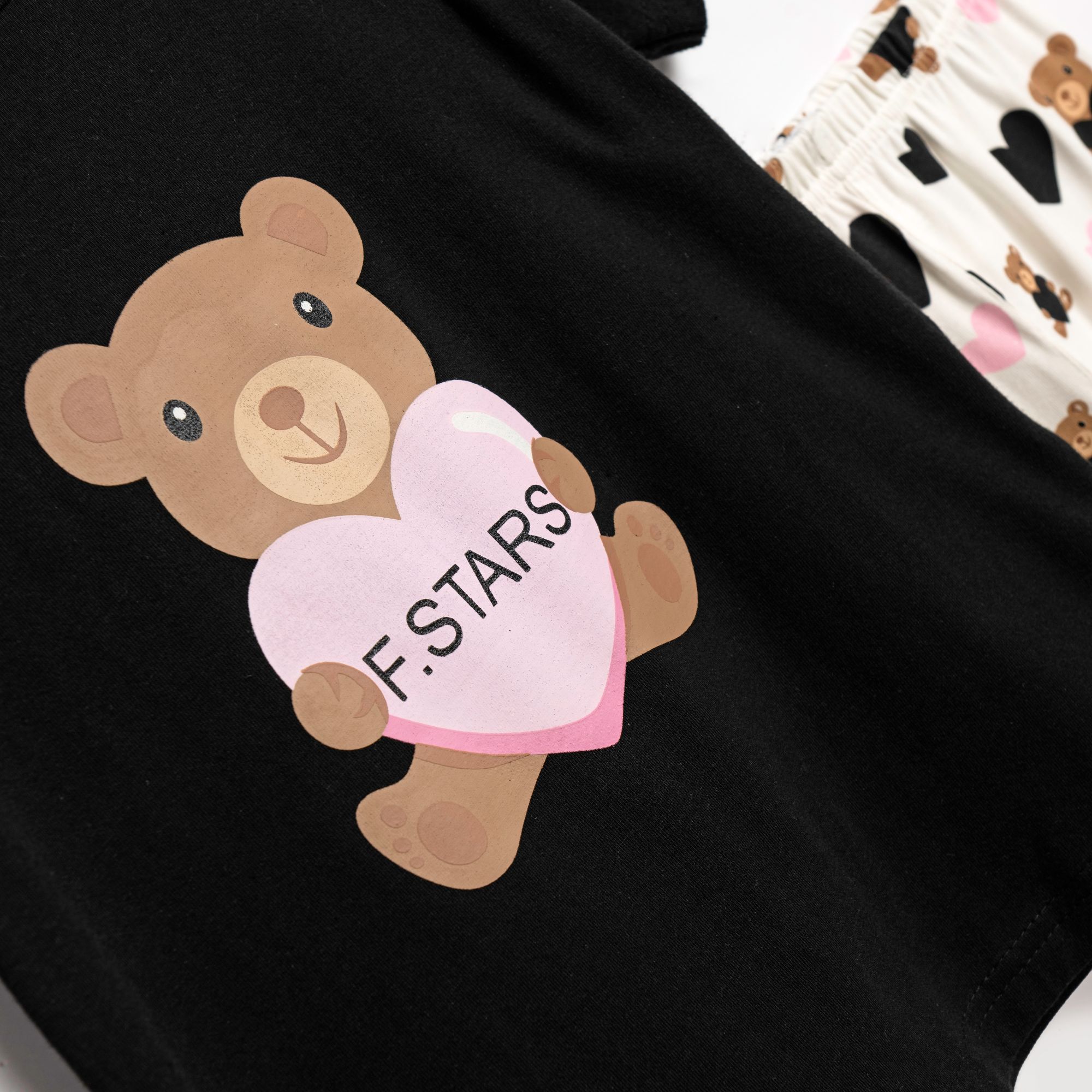 Μπλουζοφόρεμα με τύπωμα (αρκουδάκι) και κολάν κάπρι κάλτσα λύκρα με τύπωμα allover σε χρώμα μαύρο/εκρού για κορίτσι 1-6 ετών