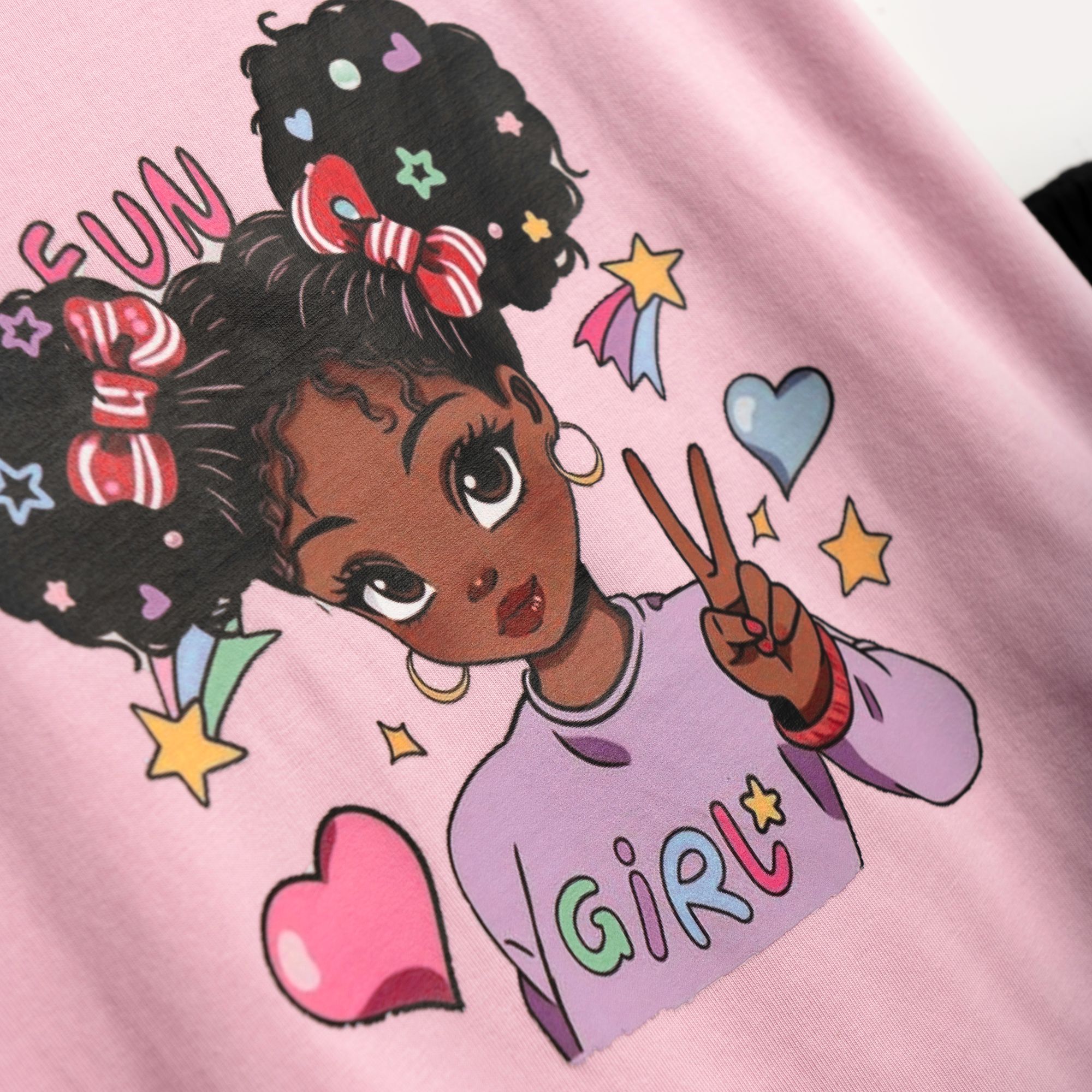 Μπλουζοφόρεμα με τύπωμα (fun girl) και κολάν κάπρι κάλτσα λύκρα σε χρώμα ροζ λεβάντα/μαύρο για κορίτσι 1-6 ετών