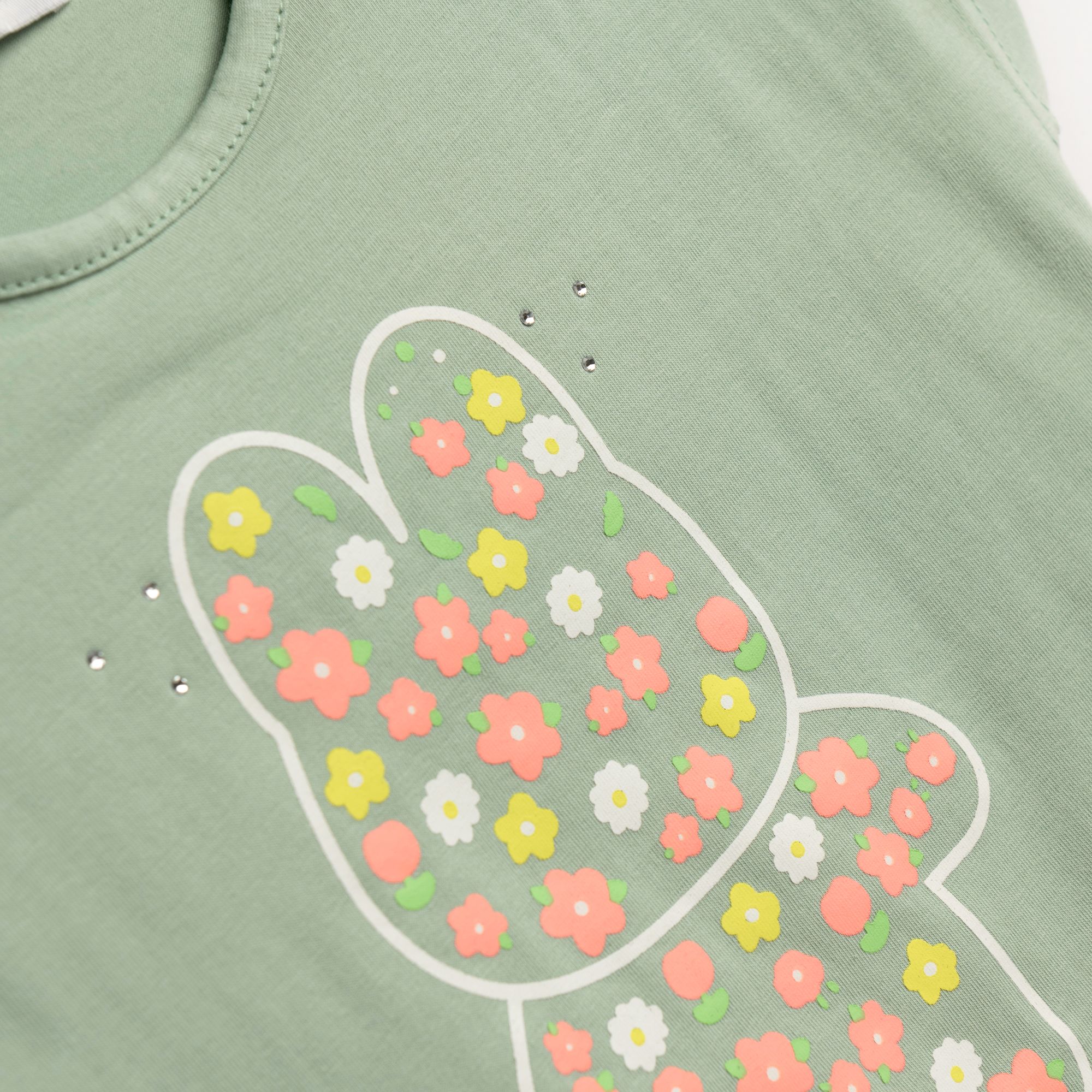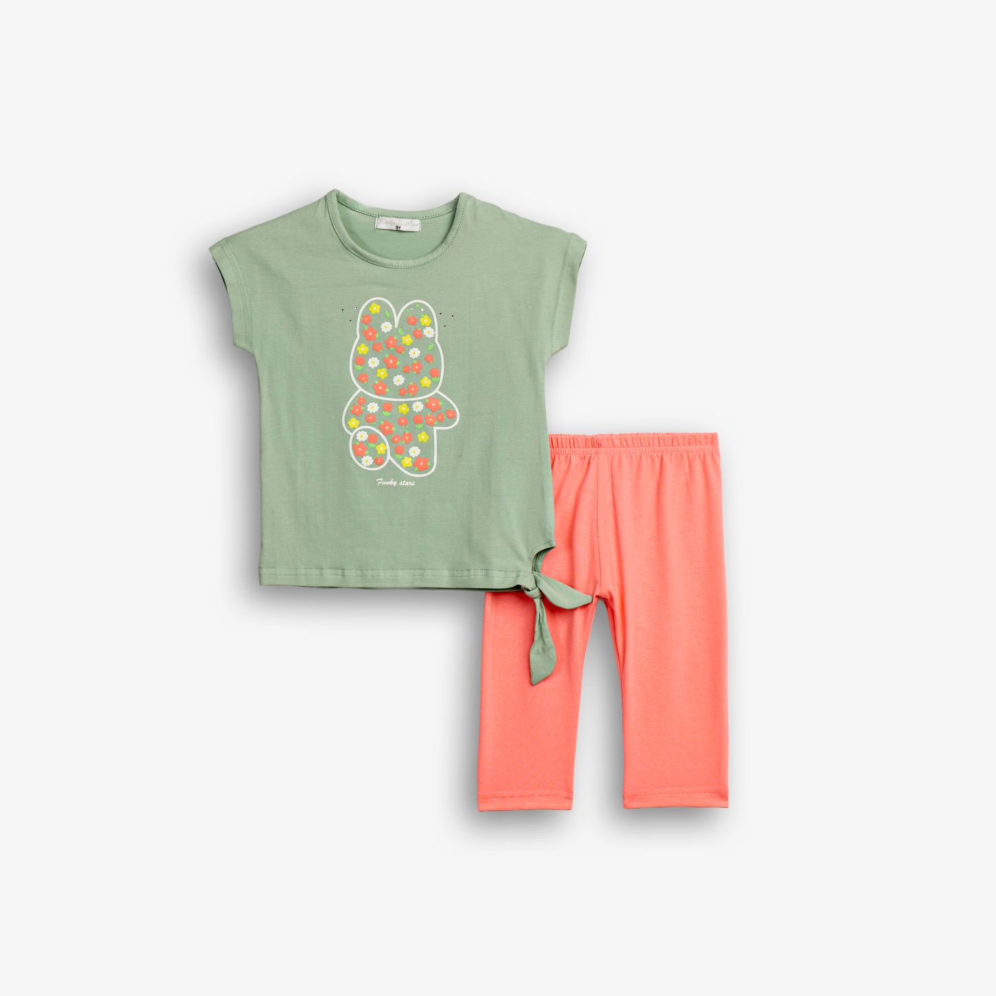 Μπλουζοφόρεμα με τύπωμα (κουνελάκι) και κολάν κάπρι κάλτσα λύκρα φυστικί/φωσφορούχο ανοιχτό σομόν για κορίτσι 1-6 ετών